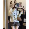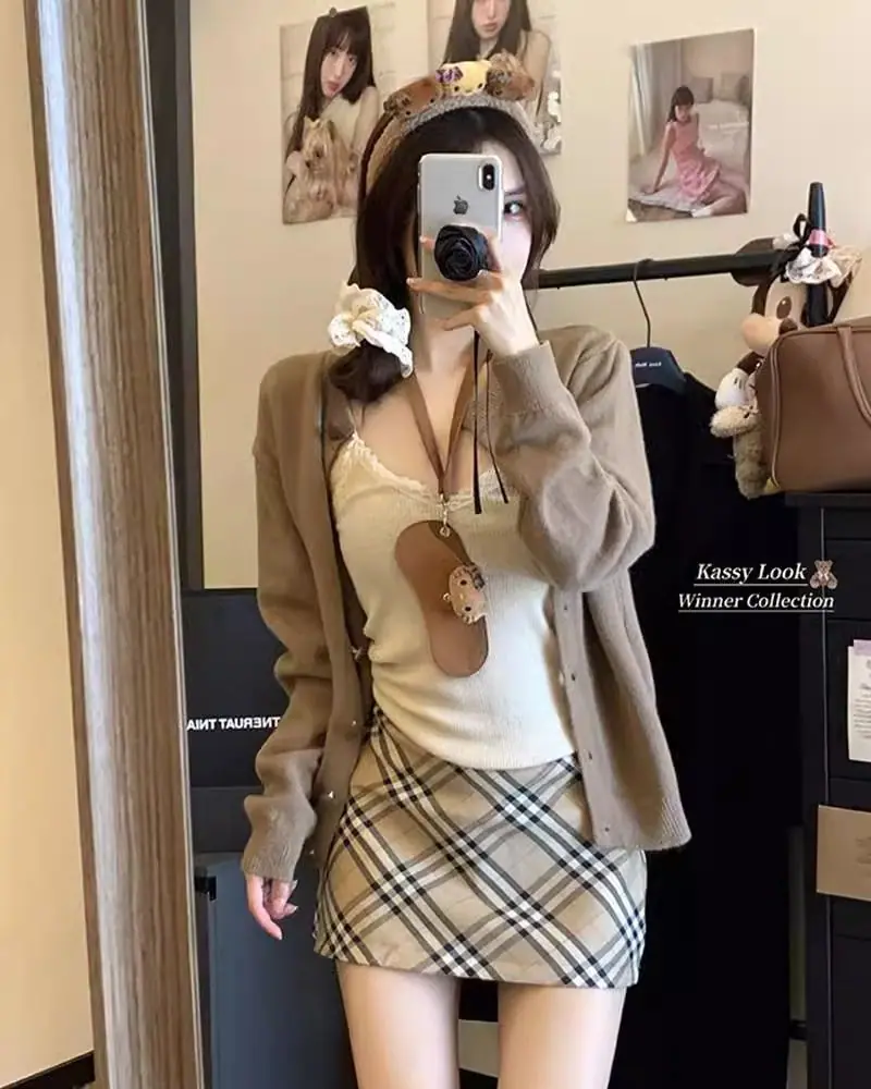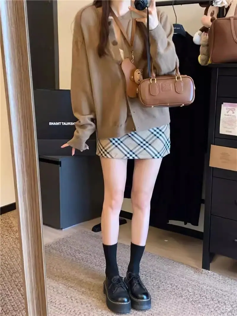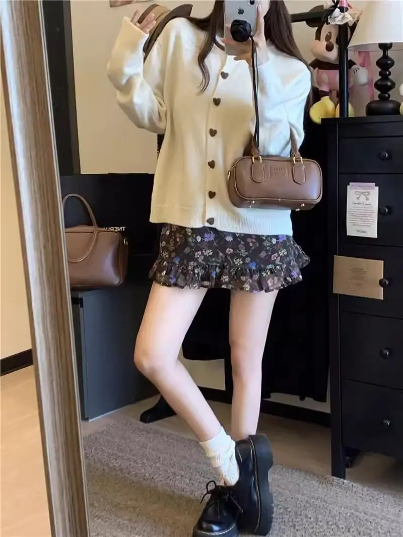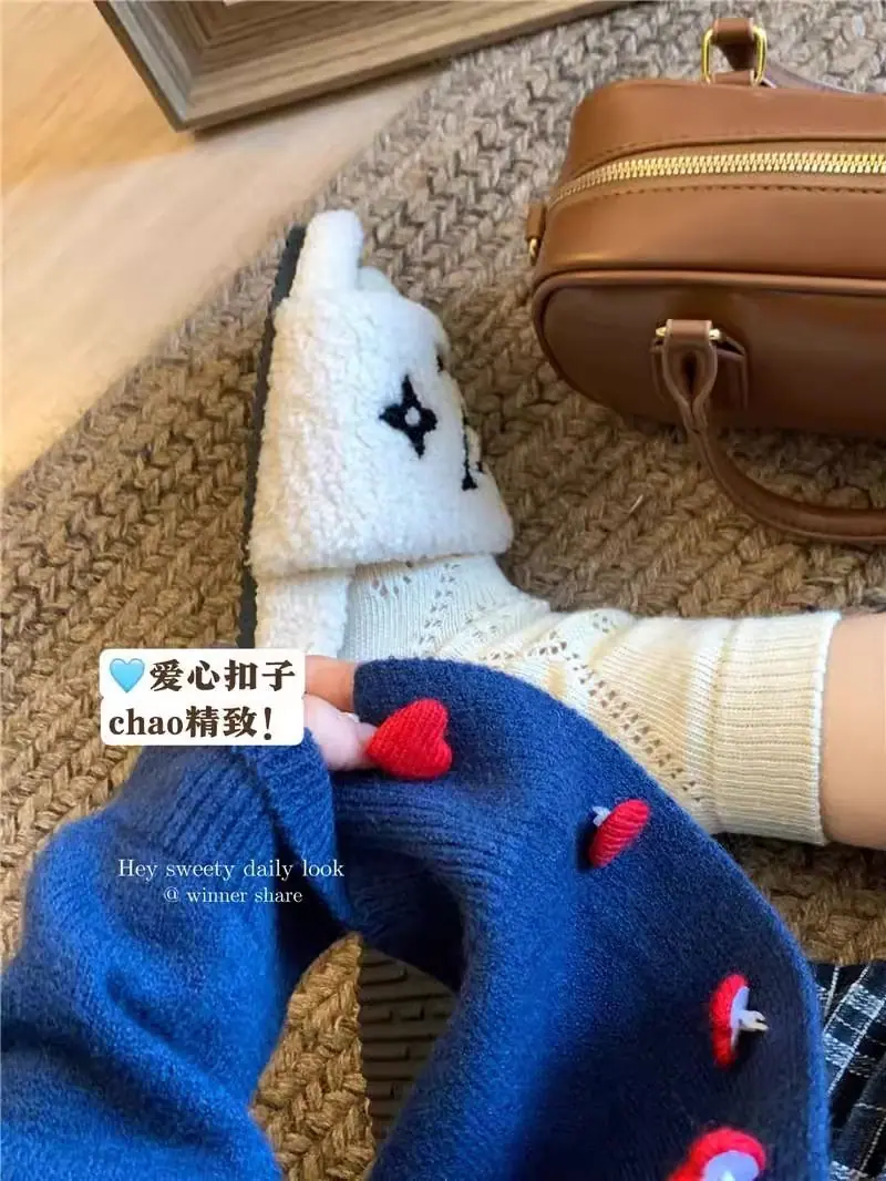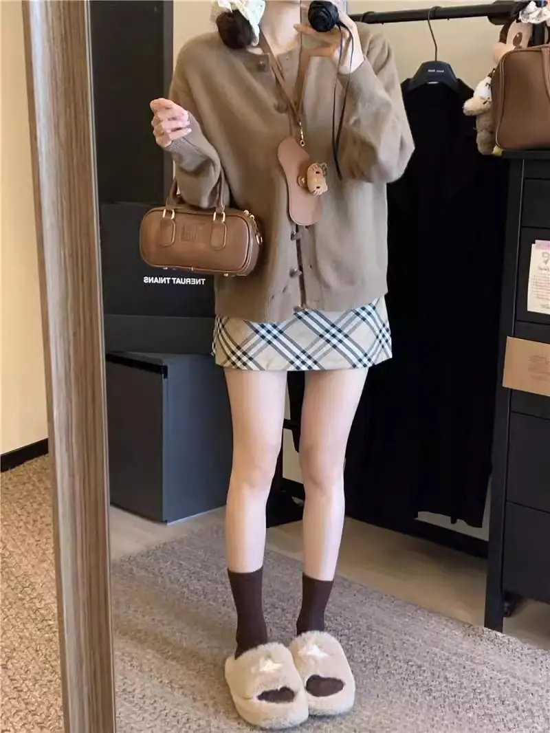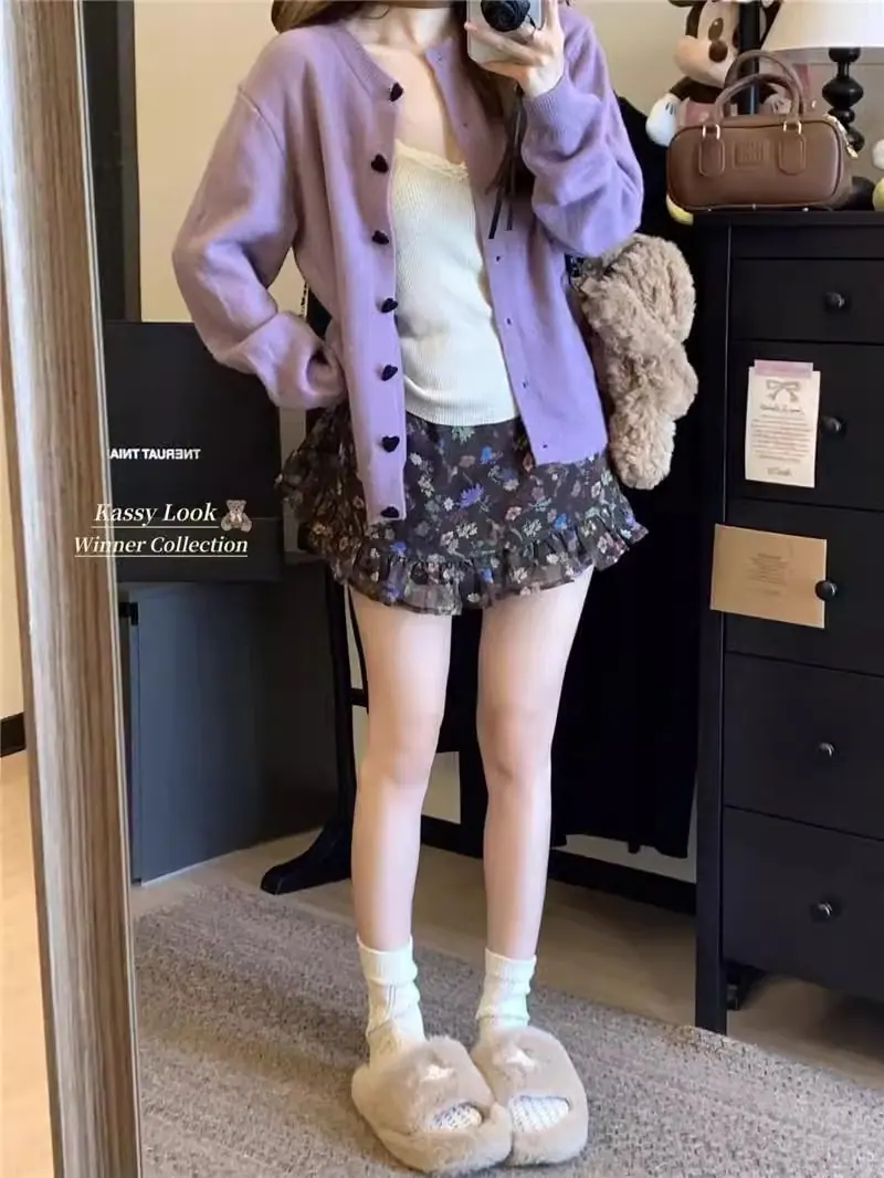 Cardigã de malha de algodão cashmere feminino outono manga longa suéter casaco estilo coreano abotoamento simples gola redonda solto top roupa exterior