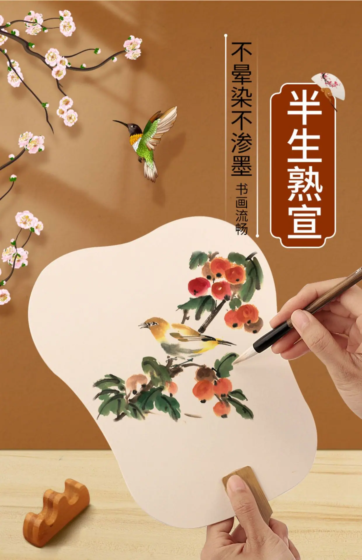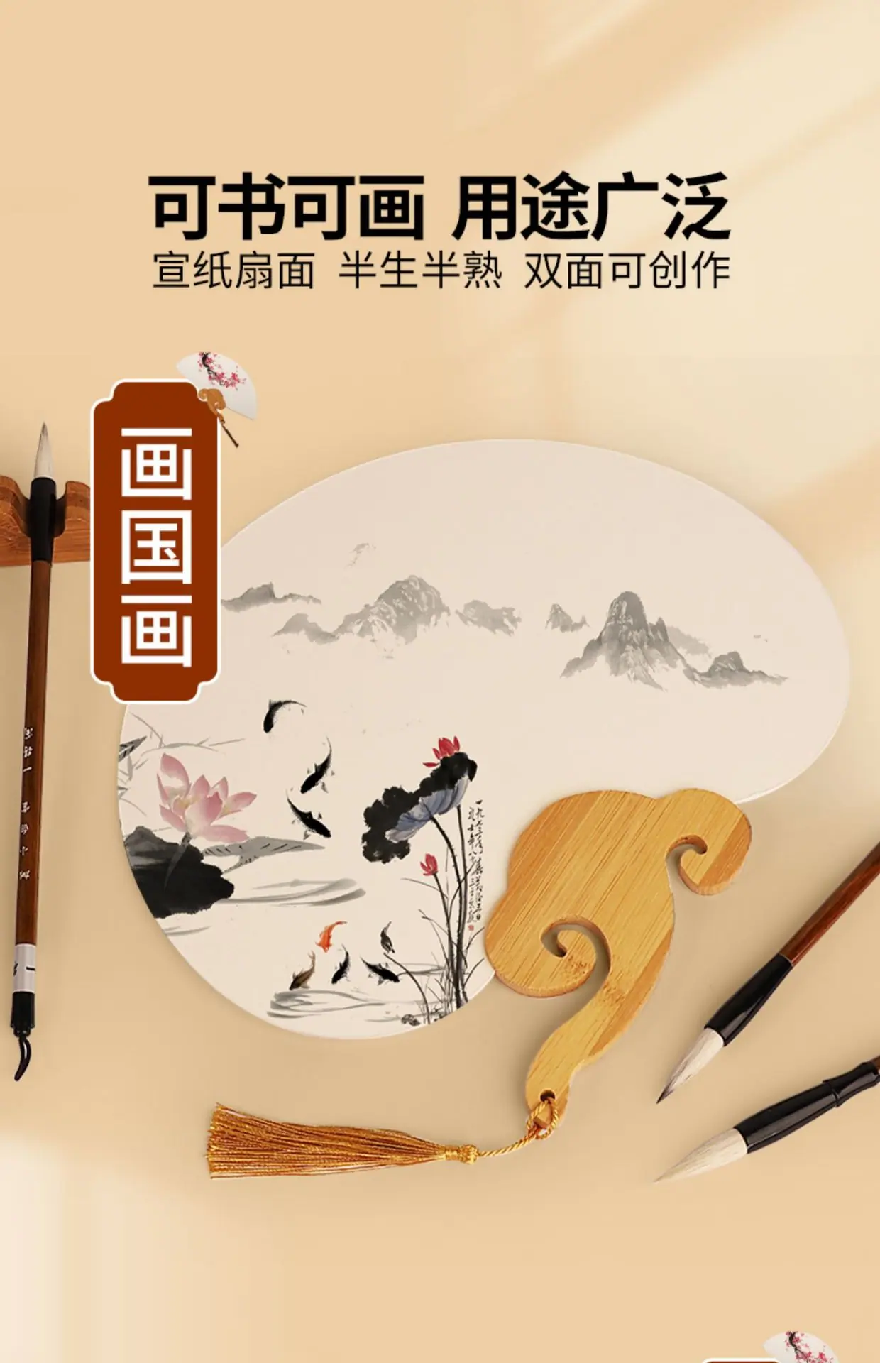 Leque Redondo de Papel Xuan Espesso de Dupla Face Leque de Papel em Branco Superfície de Leque de Cartolina Branca Semimatura Leque de Palácio Pintado à Mão Pintura Chinesa Pintada à Mão