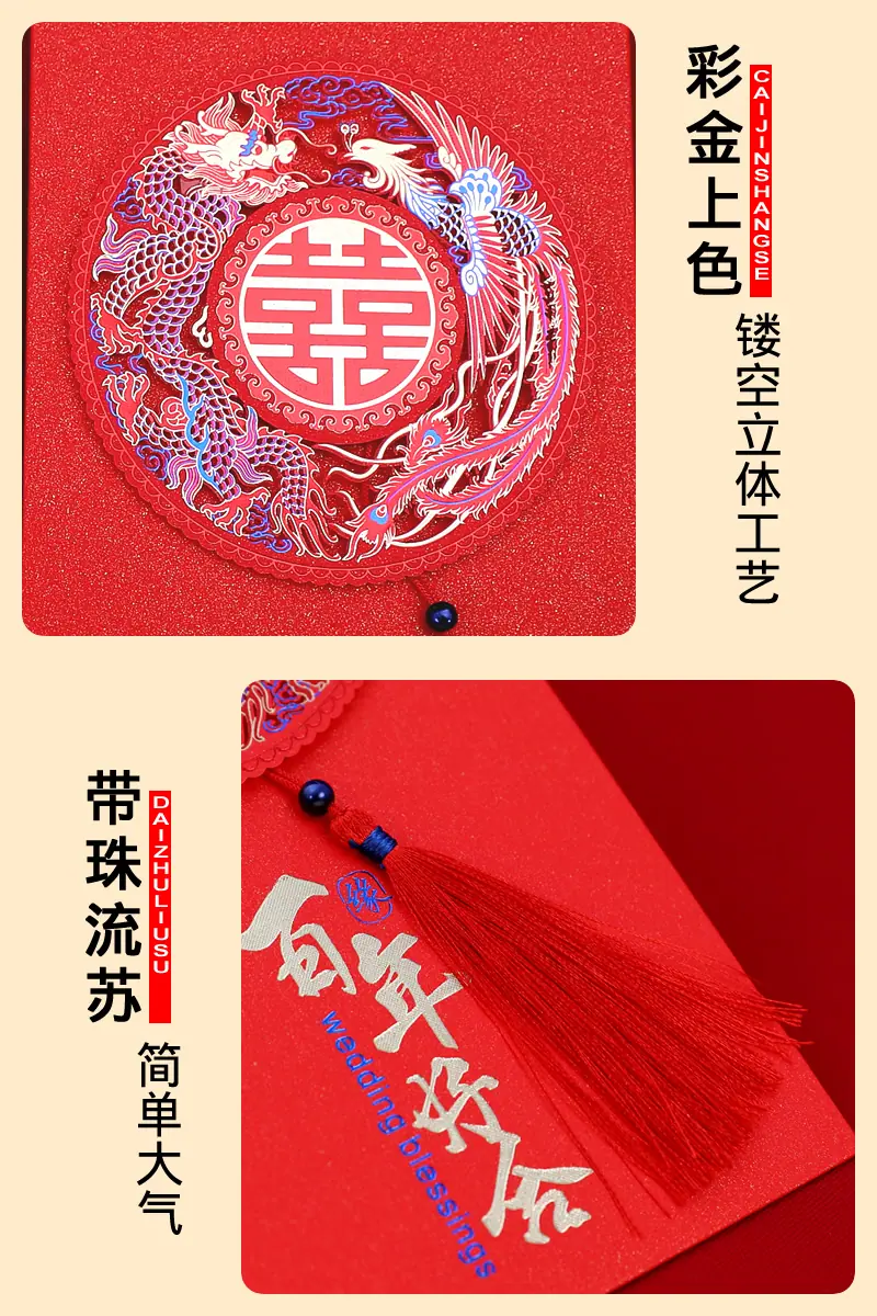 The dragon and the phoenix are auspicious, Lottery to get married, Color gold pearl dragon and phoenix