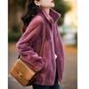 Casaco Pelúcia Feminino de Comprimento Médio Solto Quente Espesso com Zíper Capuz Pelúcia Dupla Face Mulheres