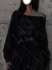 Camiseta Longa de Manga Longa Preguiçosa com Ombro Caído Estilo Retro Americano Street Style Y2K Moda Estampa de Letra Top sem Ombro