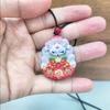 Pingente Raposa de Nove Caudas Pintado com Areia Vermelha Cinábrio de Alto Conteúdo para Homens e Mulheres Colar com Pingente de Raposa Flor de Pêssego