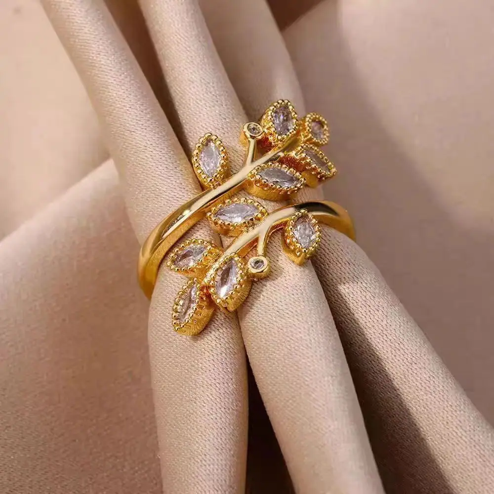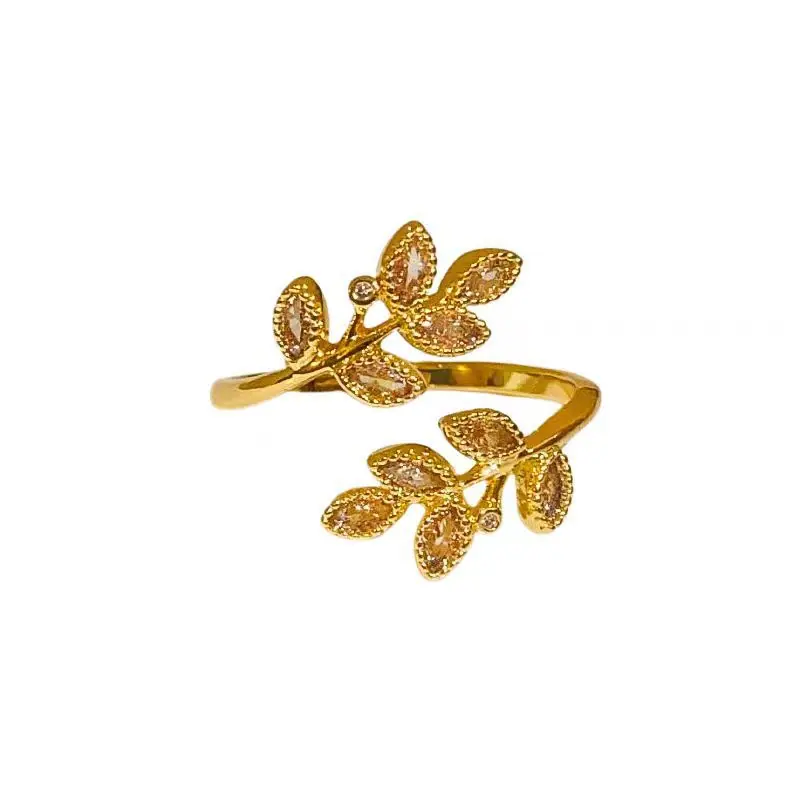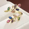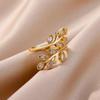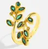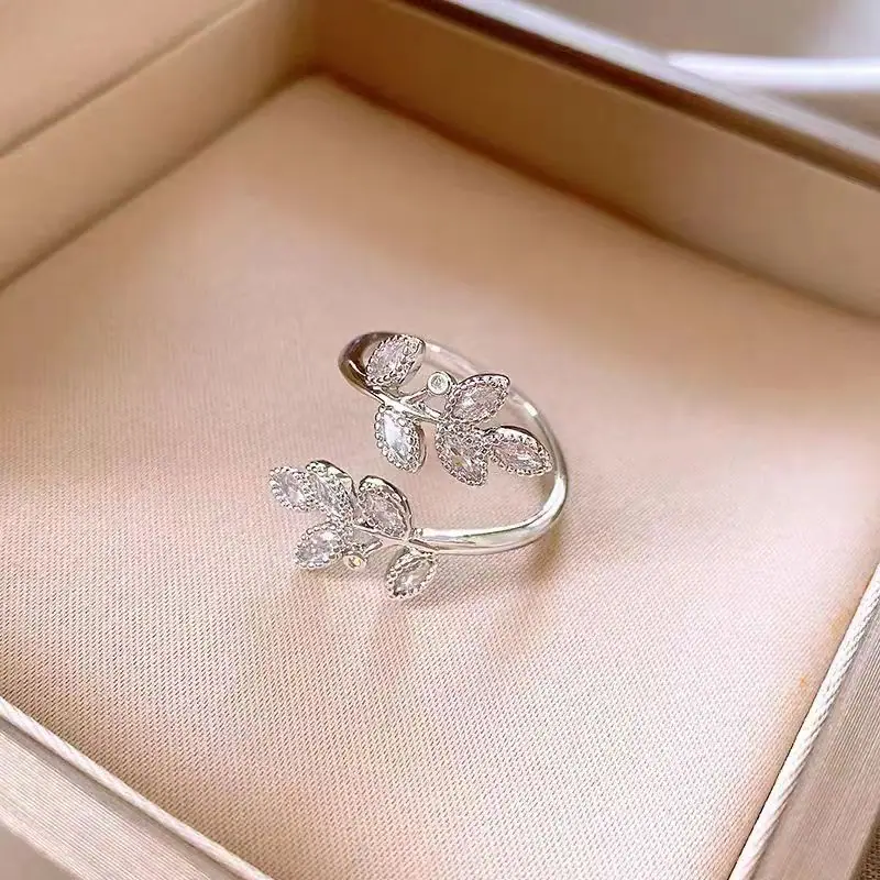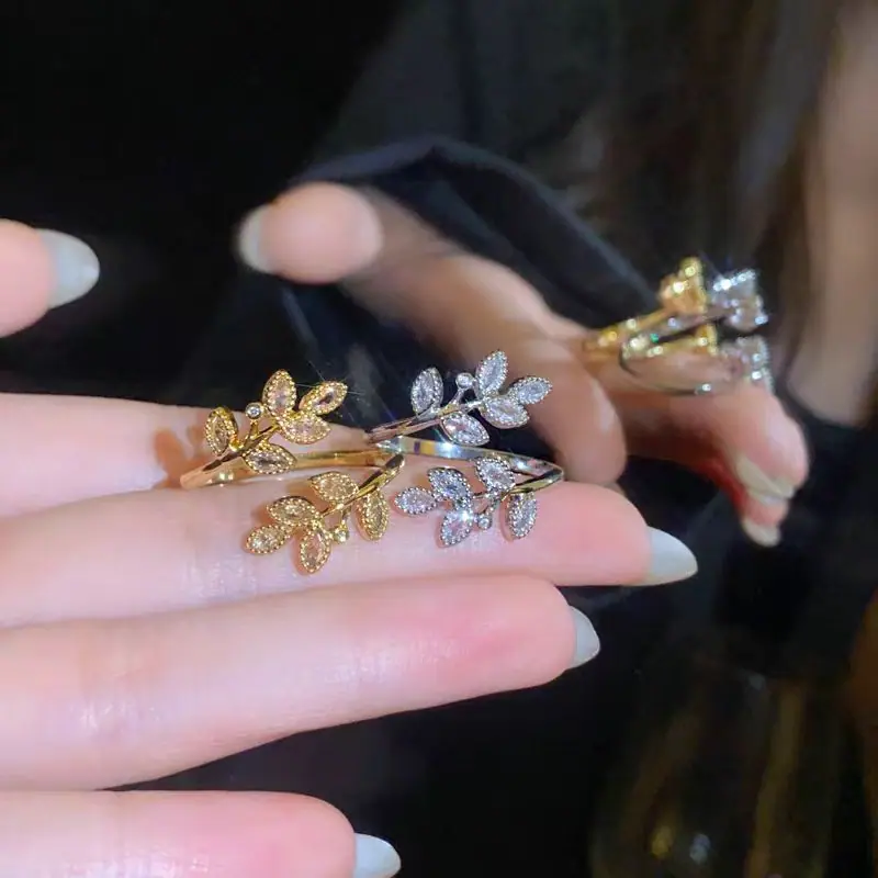 Moda Transfronteiriça Anel de Abertura Pequeno Folha Fresca Feminino Luxo Leve Elegante Anel de Dedo Sofisticado Anel de Nicho