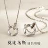 Colar de casal Mobius um par de moda banhado a prata para combinar com tudo masculino e feminino corrente clavicular de anel duplo presente 520 para namorada