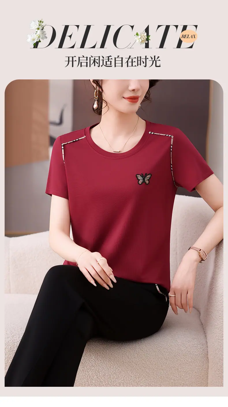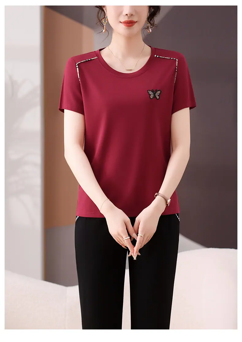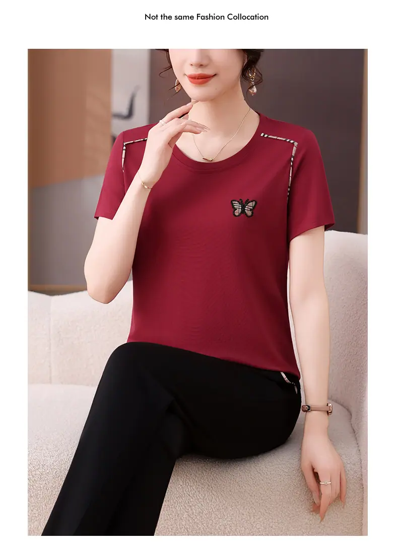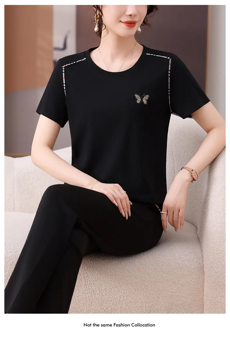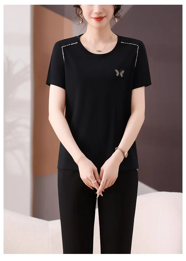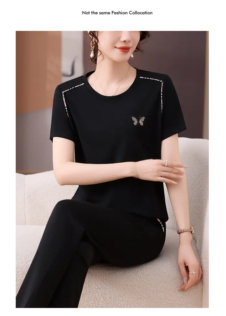 Conjunto Esportivo Casual para Mulheres Verão Moda Novo Gola Redonda Seda Gelo Manga Curta Calças Estilo Ocidental Corrida Conjunto Fino de Duas Peças