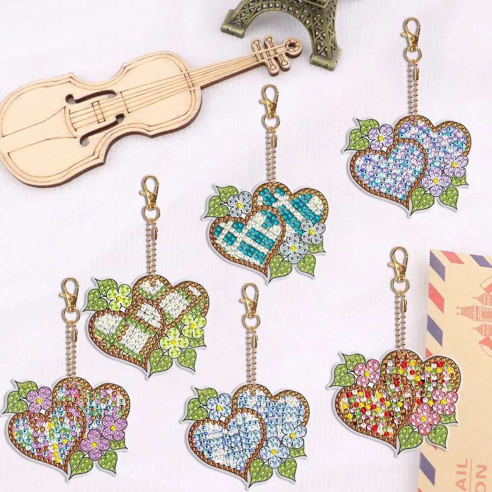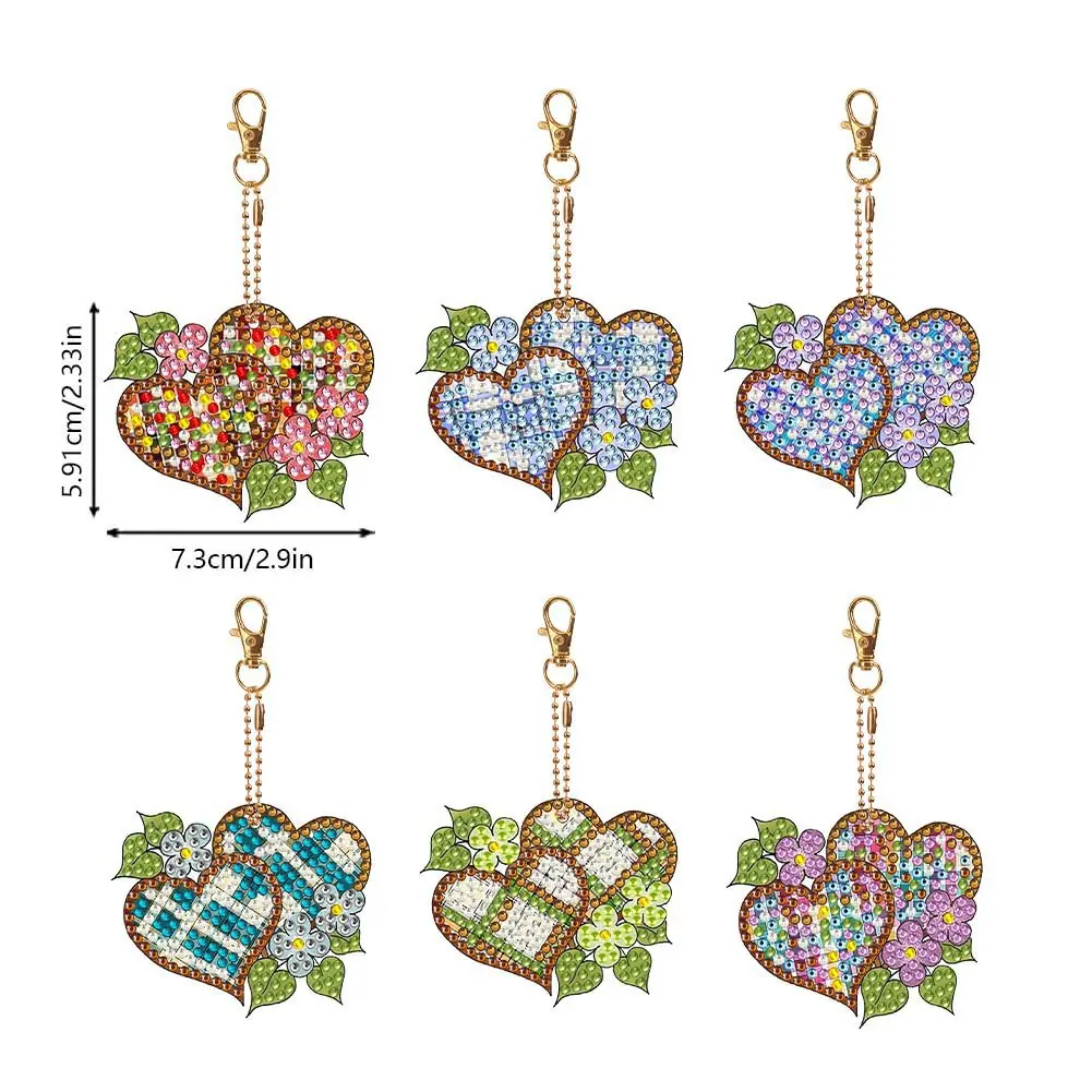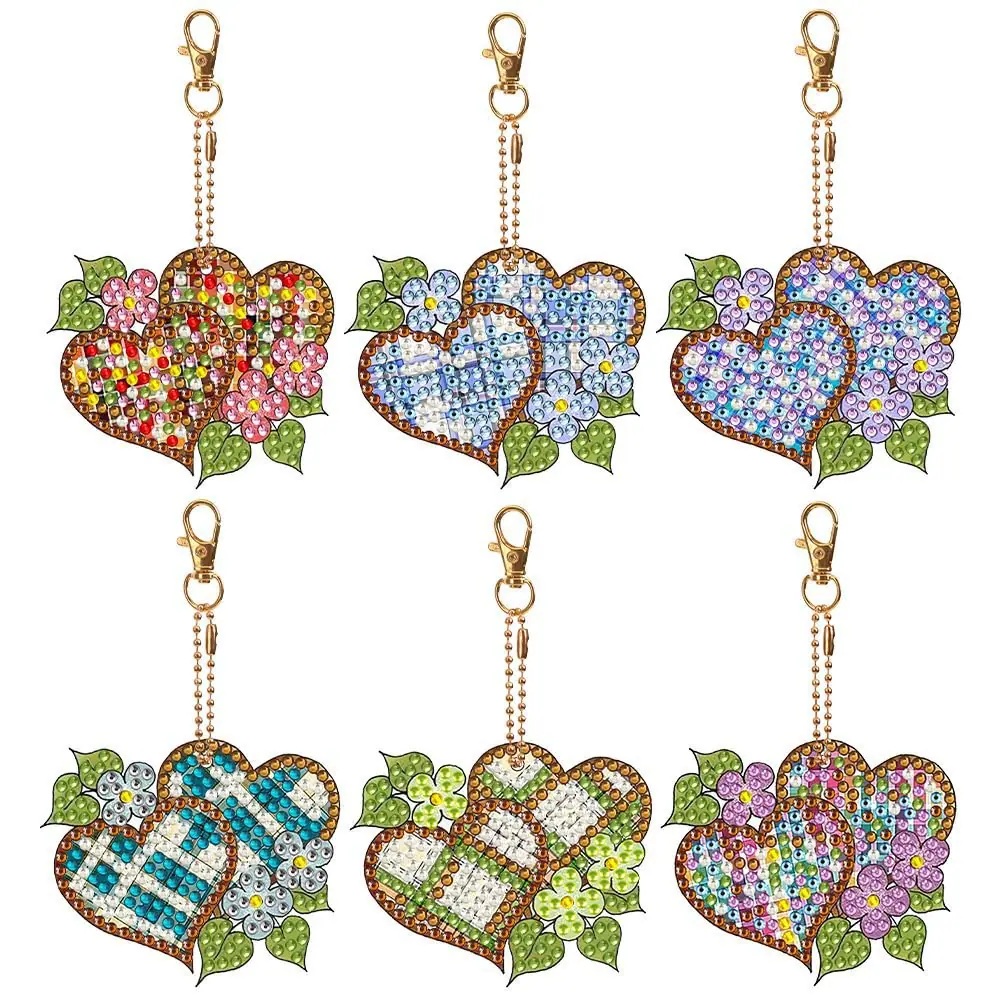 Espelho Cruz 5D Novo 6 Peças Pintura Diamante Material Acrílico Chaveiro Dupla Face DIY Diamante Completo Colorido Amor