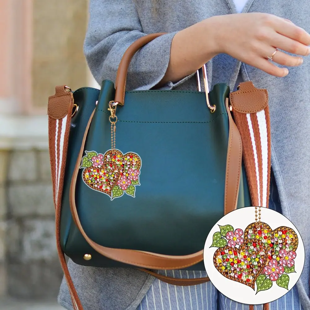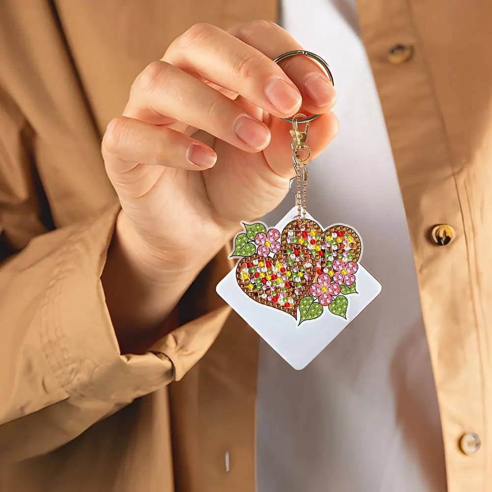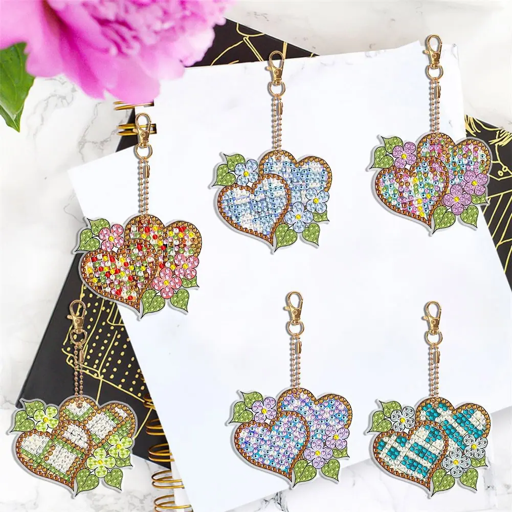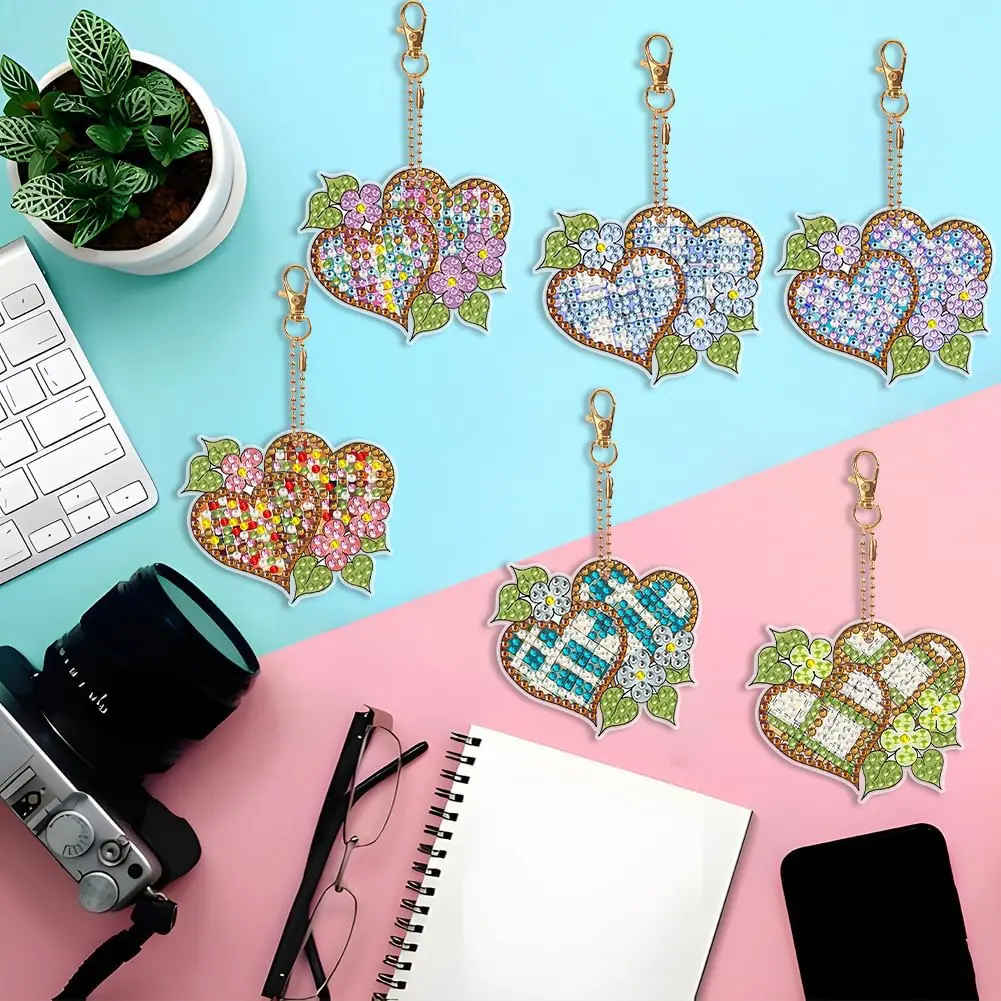 Espelho Cruz 5D Novo 6 Peças Pintura Diamante Material Acrílico Chaveiro Dupla Face DIY Diamante Completo Colorido Amor