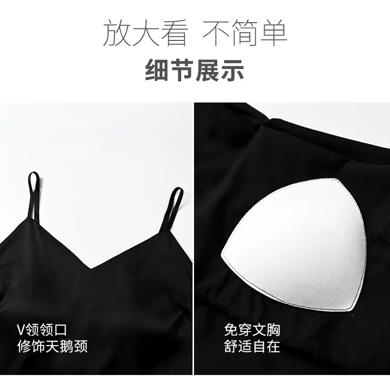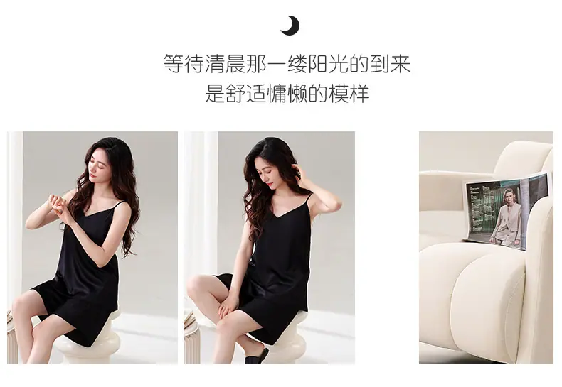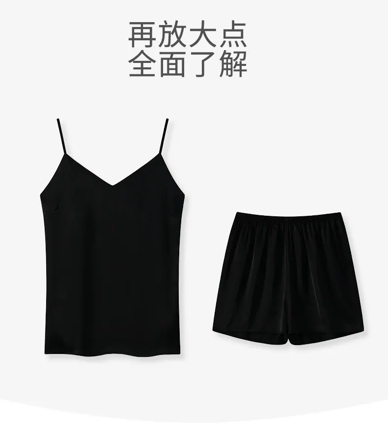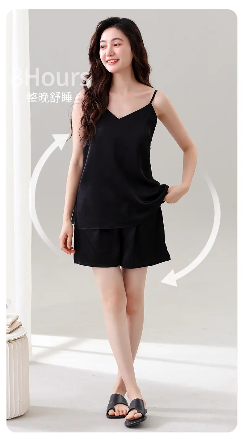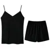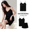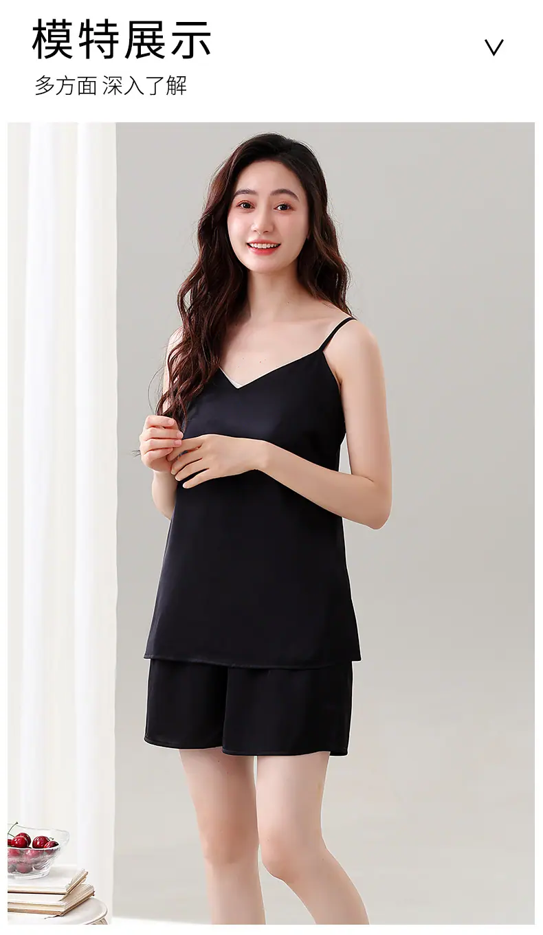 Pijama Feminina Sexy Verão Seda Gelo Decote V Cor Sólida Camisola Shorts com Bojo Fina Solta Emagrecedora