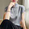 2025 Gola Alta Manga Curta Tricotada Camiseta Básica Verão Nova Feminina Manga Pequena Ombro Moda Atacado Tendência Roupas Femininas