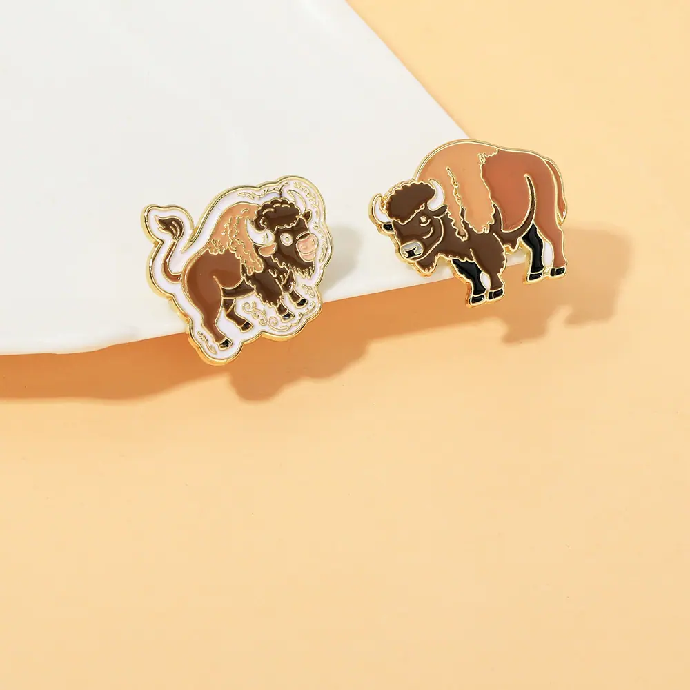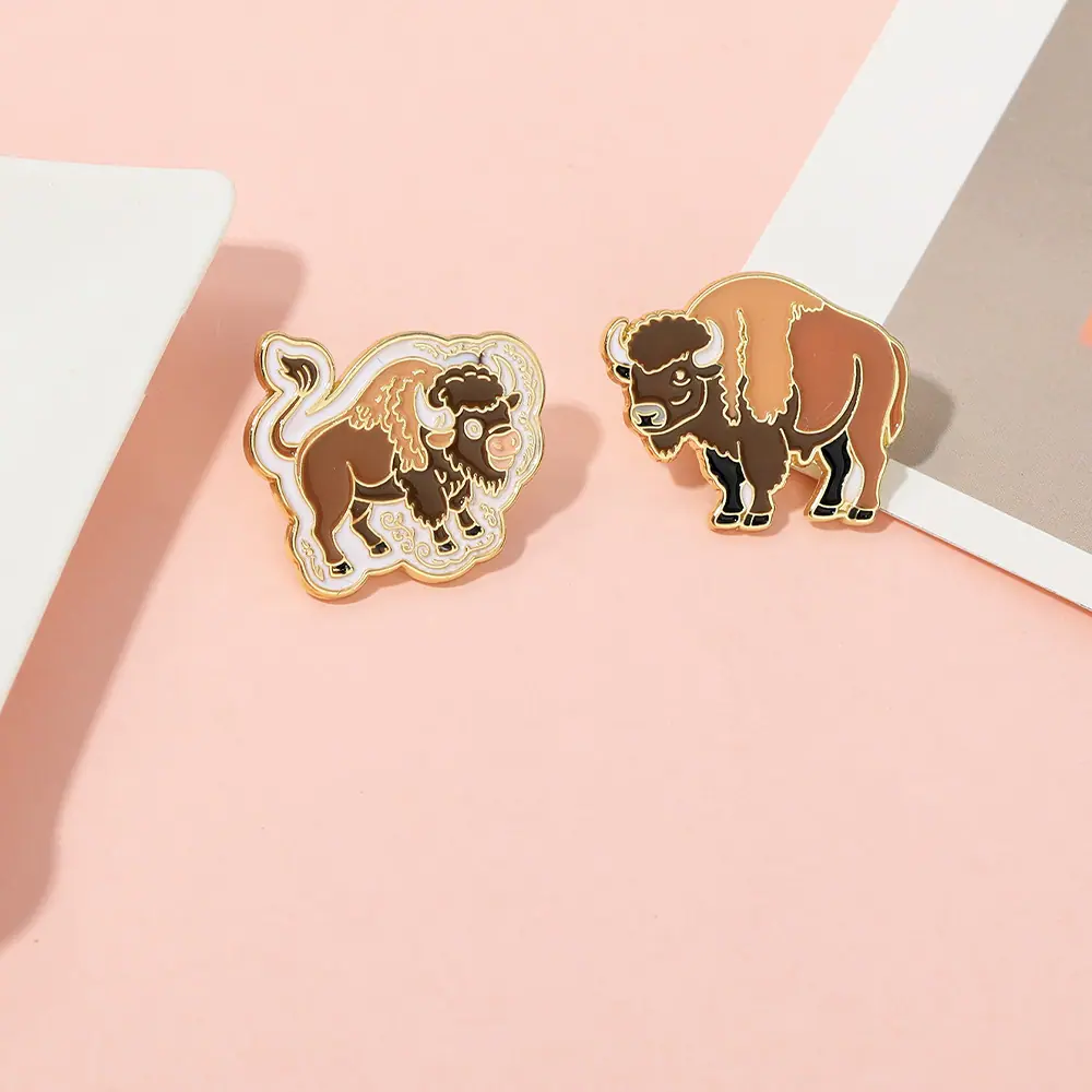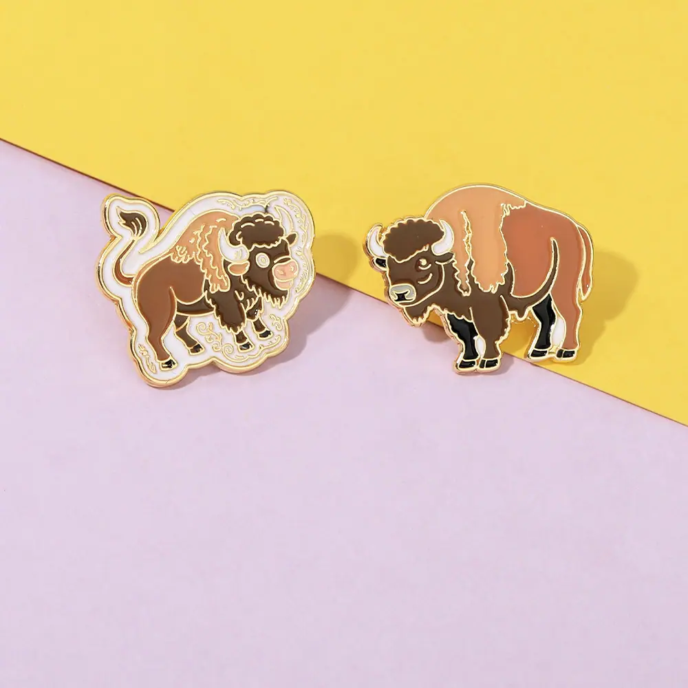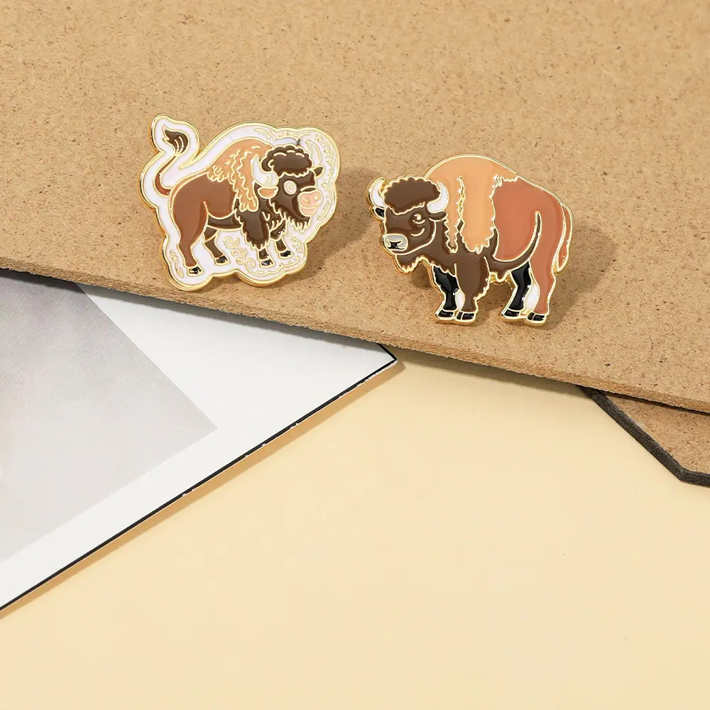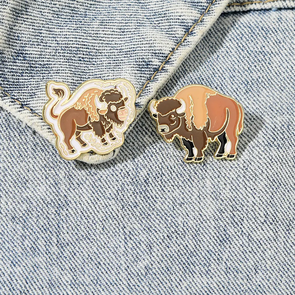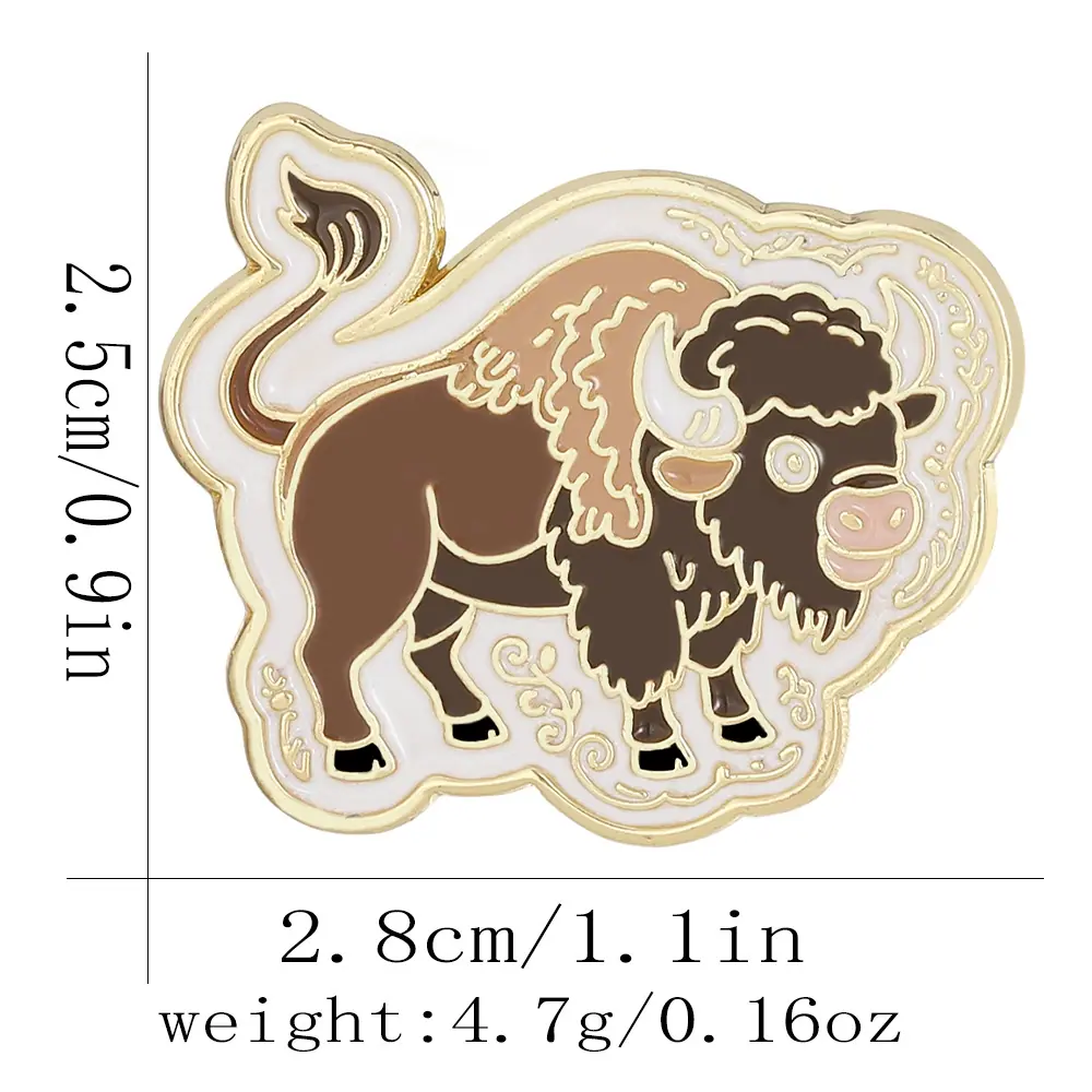 Broche de Metal Criativo Personalizado em Forma de Iaque de Desenho Animado Animal Vaca Liga Esmaltado Acessórios Pin Decoração