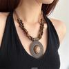Colar Boêmio Retrô Resistente com Contas Turquesa Padrão Antigo Esculpido Design de Nicho Étnico Feminino Corrente para Clavícula