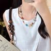 Colar de Contas Dopamina Colorido para Mulheres 2025 Novo Verão Doce Corrente para Clavícula Colar Retrô de Pedra Natural Acessórios
