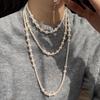 Colar de Pérolas em Camadas para Mulheres, Estilo Longo de Verão, Corrente de Suéter de Luxo, Acessório que Não Desbota, Joia de Corrente para Pescoço