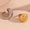 Design de Nicho Europeu e Americano Personalizado Anel Popular Aço Inoxidável Banhado a Ouro 18K Textura de Padrão Martelado Anel Aberto Gota d'Água