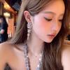 Brincos Longos Exagerados Vazados Europeus e Americanos de Agulha de Prata Nova Primavera/Verão 2025 com Diamantes, Brincos de Borla Ultrabrilhantes, Alto Luxo e Elegantes