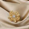 Novo Anel Grosso Ajustável de Abertura de Micro Zircônia Banhado a Ouro Cobre 18K Estilo Punk de Moda de Luxo Europeu e Americano