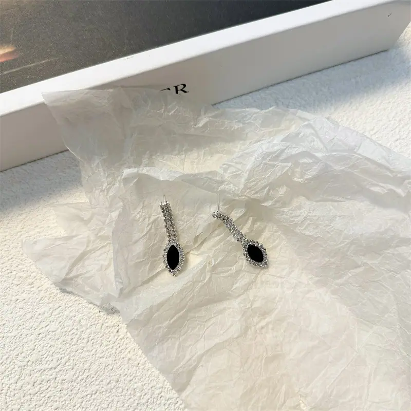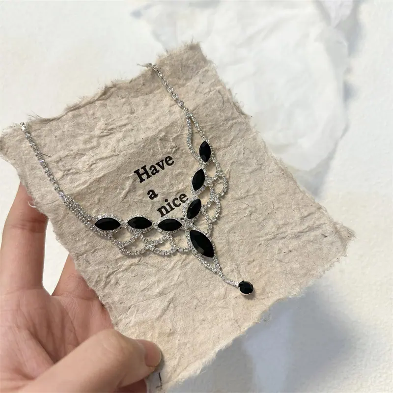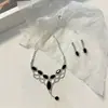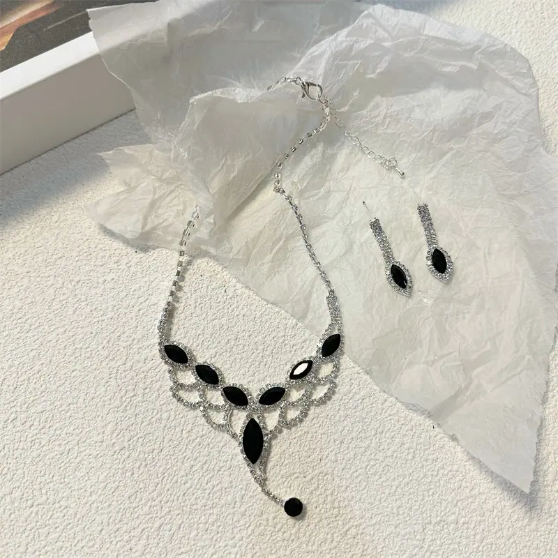 Conjunto de colar e brincos de borla em forma de V de diamante, estilo luxo leve europeu e americano, corrente clavicular, joias da moda para mulheres