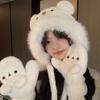 Chapéu de Urso de Pelúcia com Orelhas para Mulheres no Outono e Inverno Espessado Quente Proteção de Orelhas Capuz Bonito Chapéu Lei Feng Luvas para Ciclismo