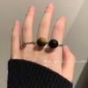 Francês Tiger Eye Stone anel aberto ins estilo frio bola dobrável de alta qualidade anel de pérola preta anel de dedo indicador