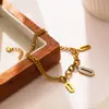 Pulseira geométrica de diamante em aço inoxidável com personalidade da moda europeia e americana, aço titânio ouro 18k zircônia pulseira de design duplo
