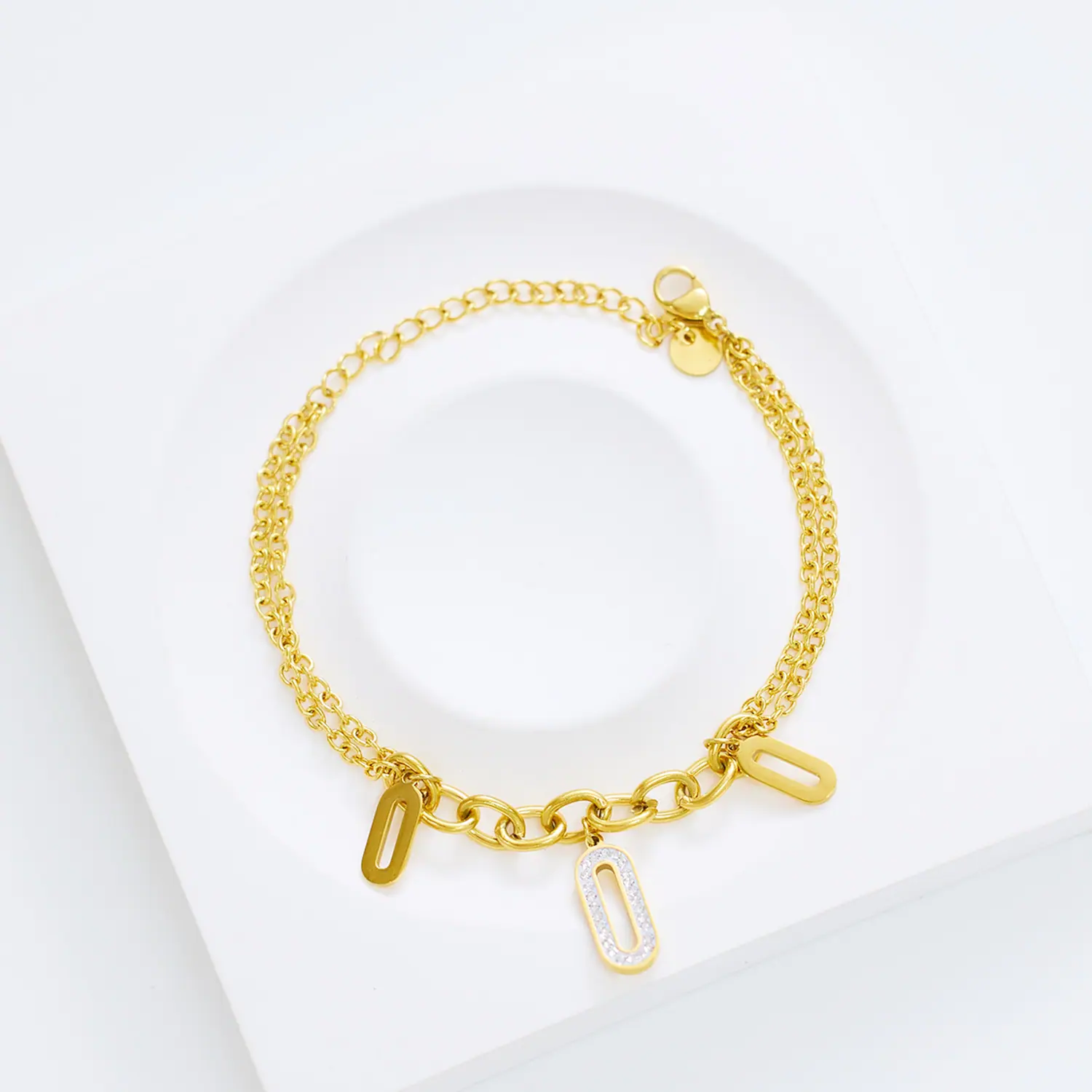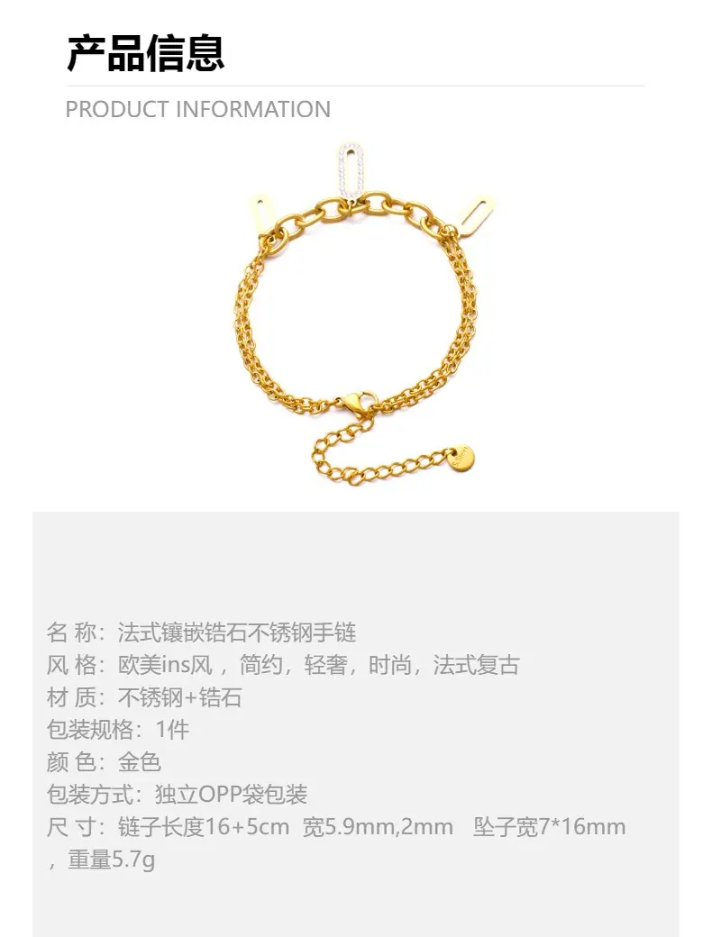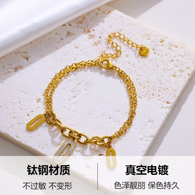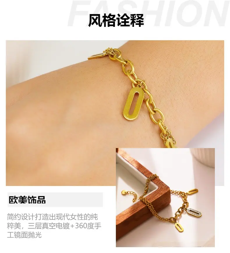 18k gold plated inlaid with white zircon double layer vacuum electroplating bracelet