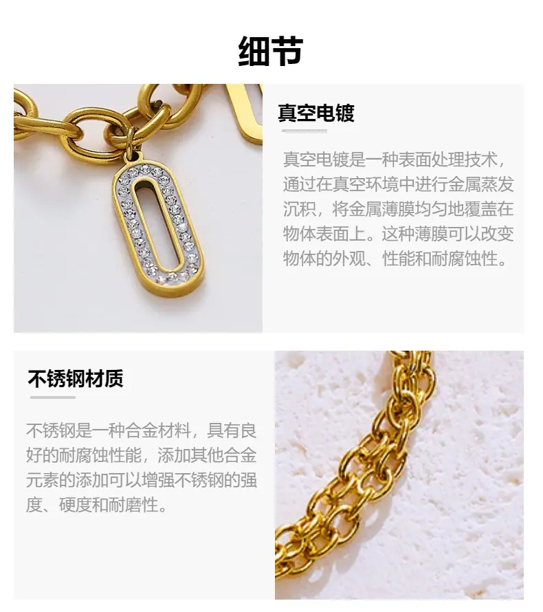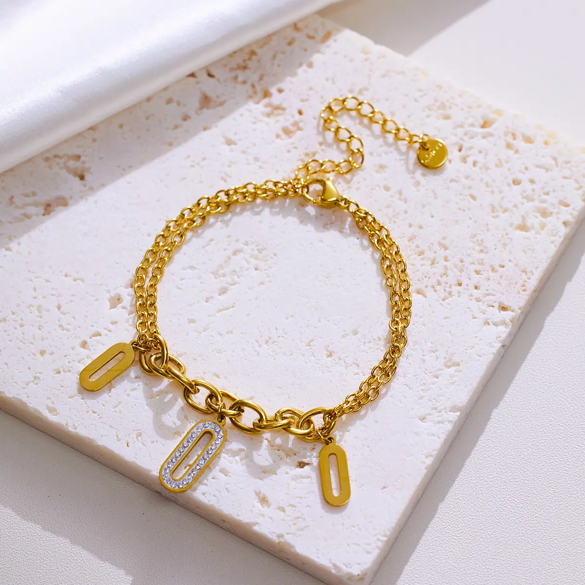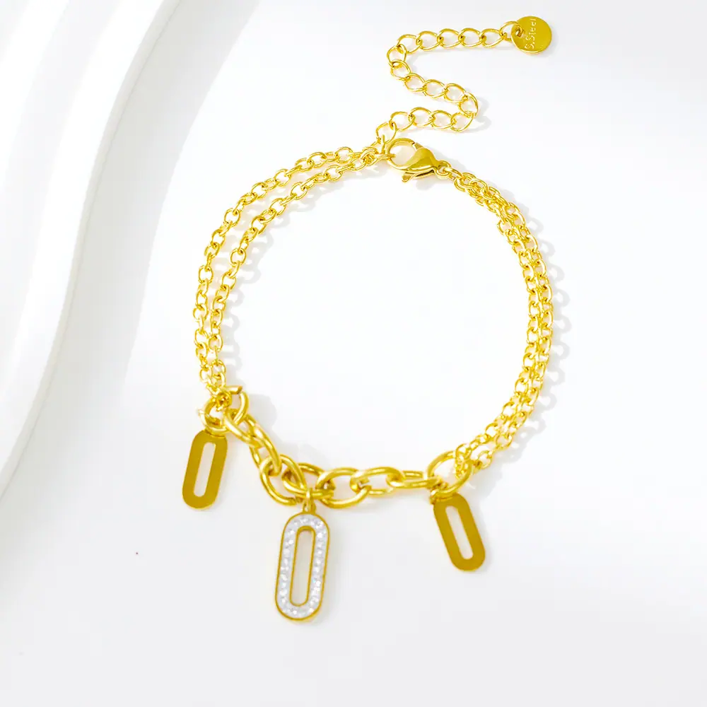 18k gold plated inlaid with white zircon double layer vacuum electroplating bracelet