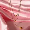 Nova Corrente de Suéter com Contas Douradas Versátil Lele Jewelry, Colar de Aço Titânio, Corrente de Clavícula Dupla Camada Fashion e Simples para Mulheres