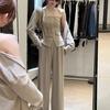 Cardigan de Manga Comprida Estilo Casual Retrô Coreano Roupa Interior Casual Calças de Perna Larga Conjunto de Três Peças para Mulheres Novo Terno de Outono 2025