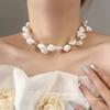 Corrente Clavicular de Pérola Imitada Irregular de Camada Dupla de Luxo Leve de Alta Qualidade Europeia e Americana Mais Vendida Transfronteiriça Colar Retrô de Nicho Cool