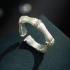 Anel Aberto de Bambu Prata Escovada Estilo Chinês Legal e Elegante Anel de Dedo Indicador Novo Anel Ajustável