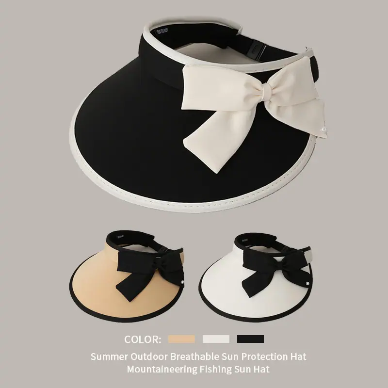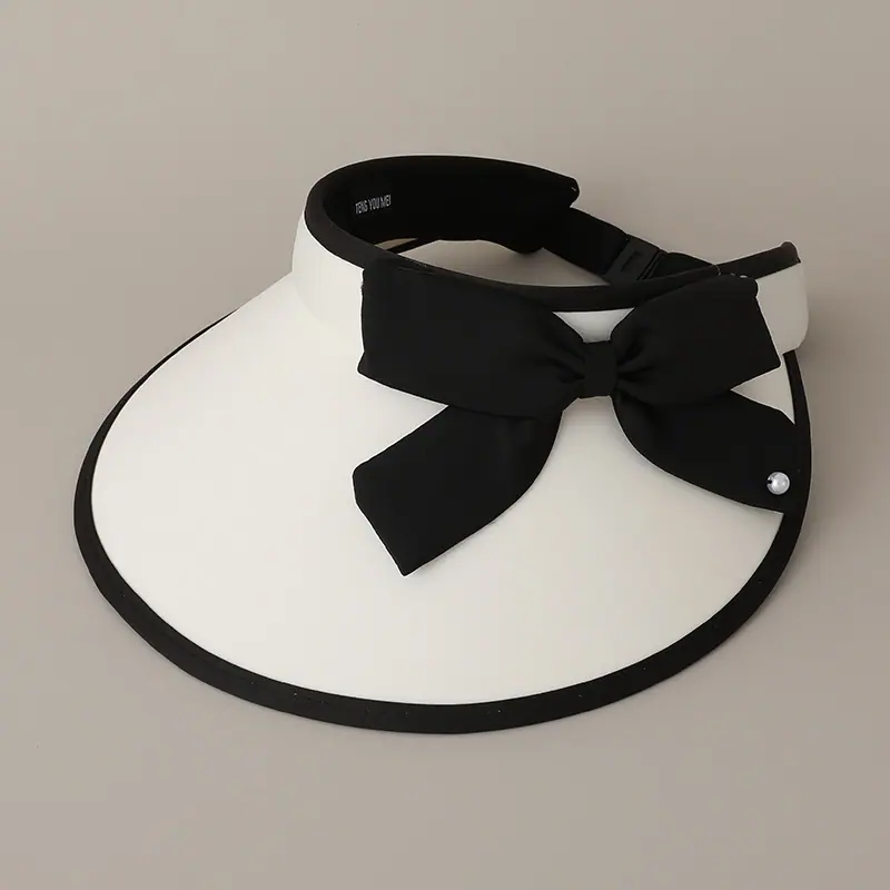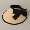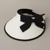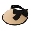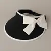 Chapéu Top Vazio Anti-UV Chapéu de Sol de Aba Larga de Verão Doce com Laço para Mulheres Chapéu de Sol para Férias ao Ar Livre Proteção Solar