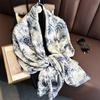 Novo Lenço de Primavera e Verão Lenço Novo Feminino de Cetim de Seda Estilo Chinês Azul e Floral Protetor Solar Lenço de Seda Estampado Moda Sensação de Sofisticação
