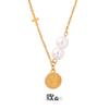 Dupla face em relevo retrato redondo pendente colar cruz acessórios de costura costura corrente titânio aço all-match temperamento clavícula corrente