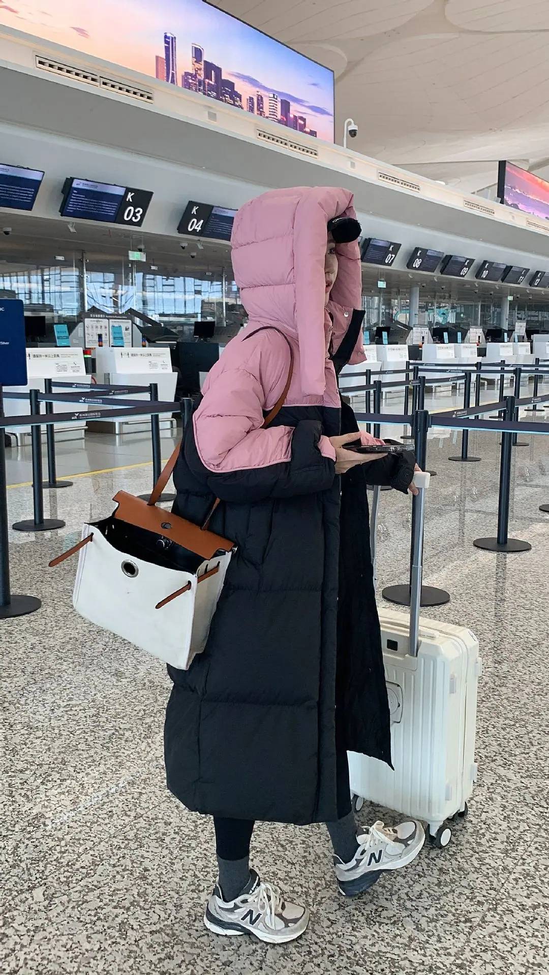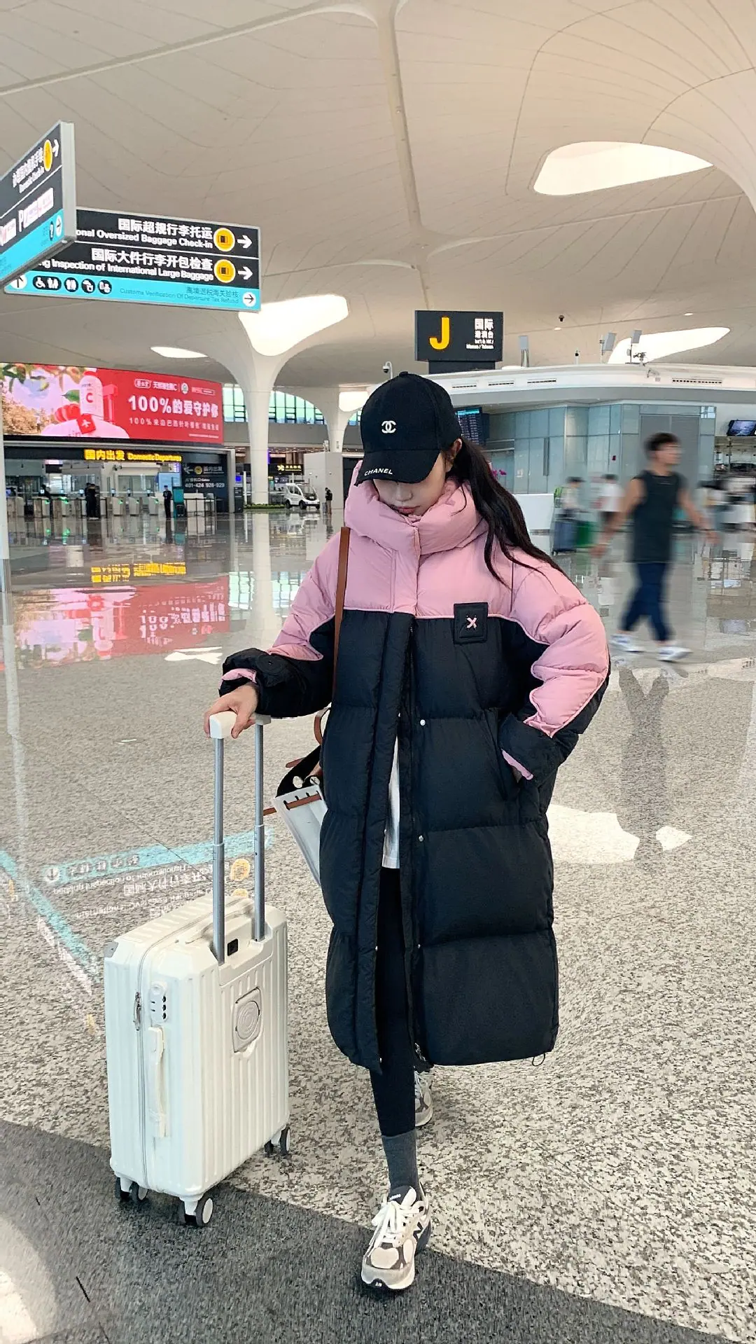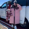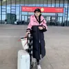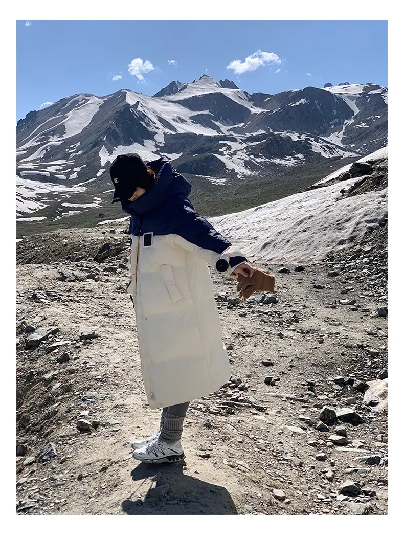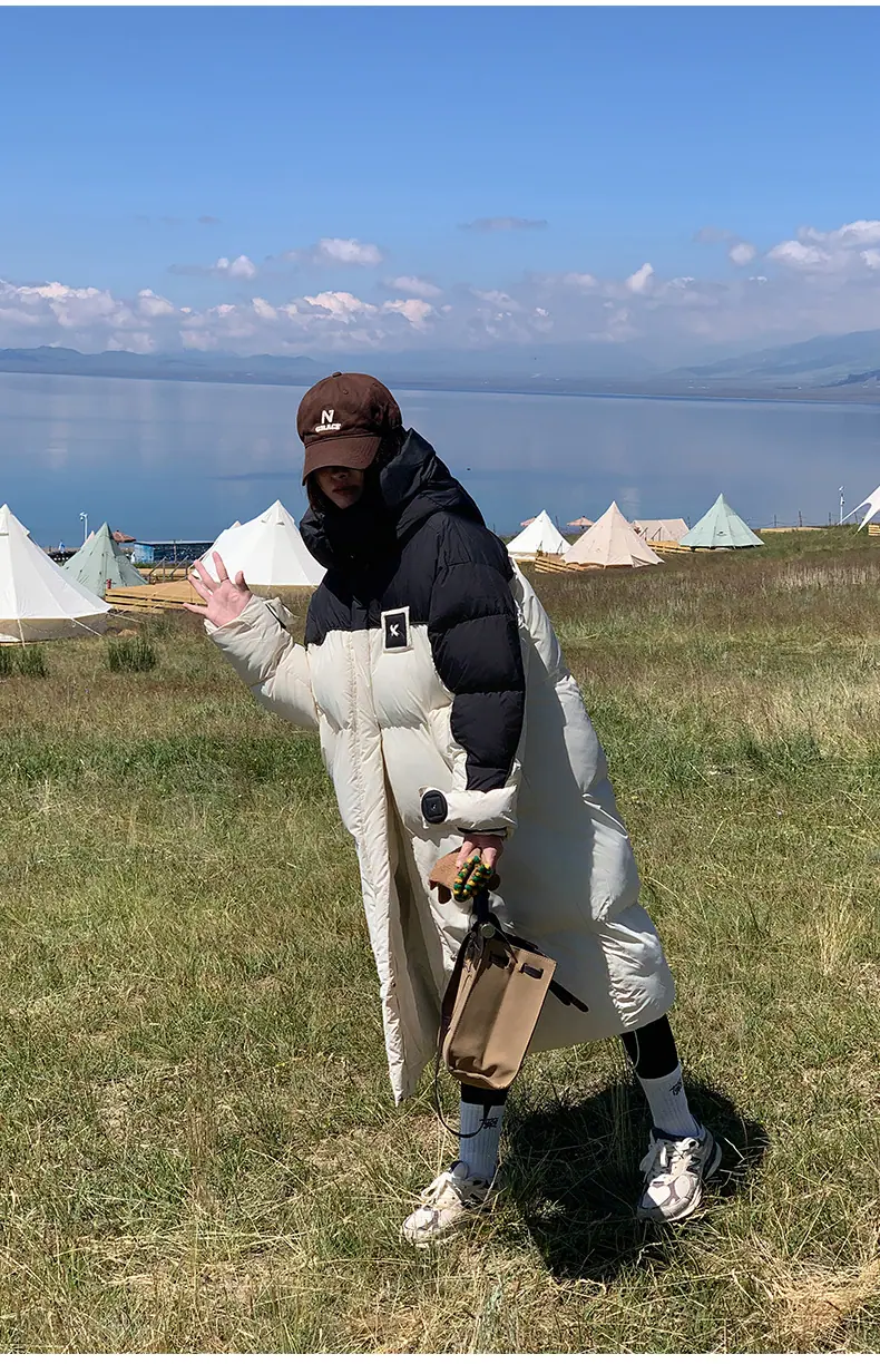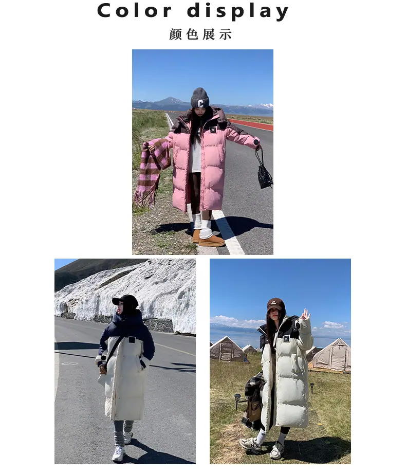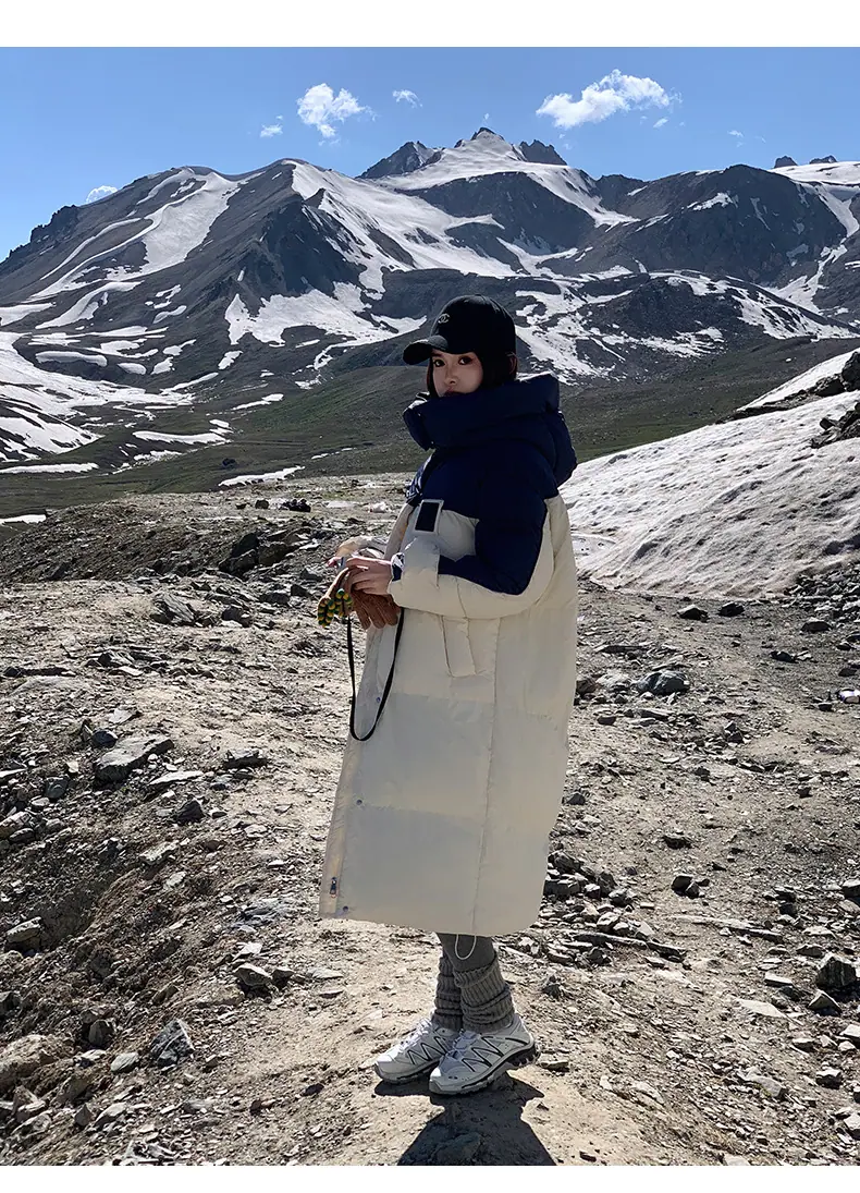 2025 Novo Inverno Feminino Estilo Coreano Grosso Solto Algodão Comprimento Médio Bloco de Cores Moda Patchwork Jaqueta com Capuz Tendência