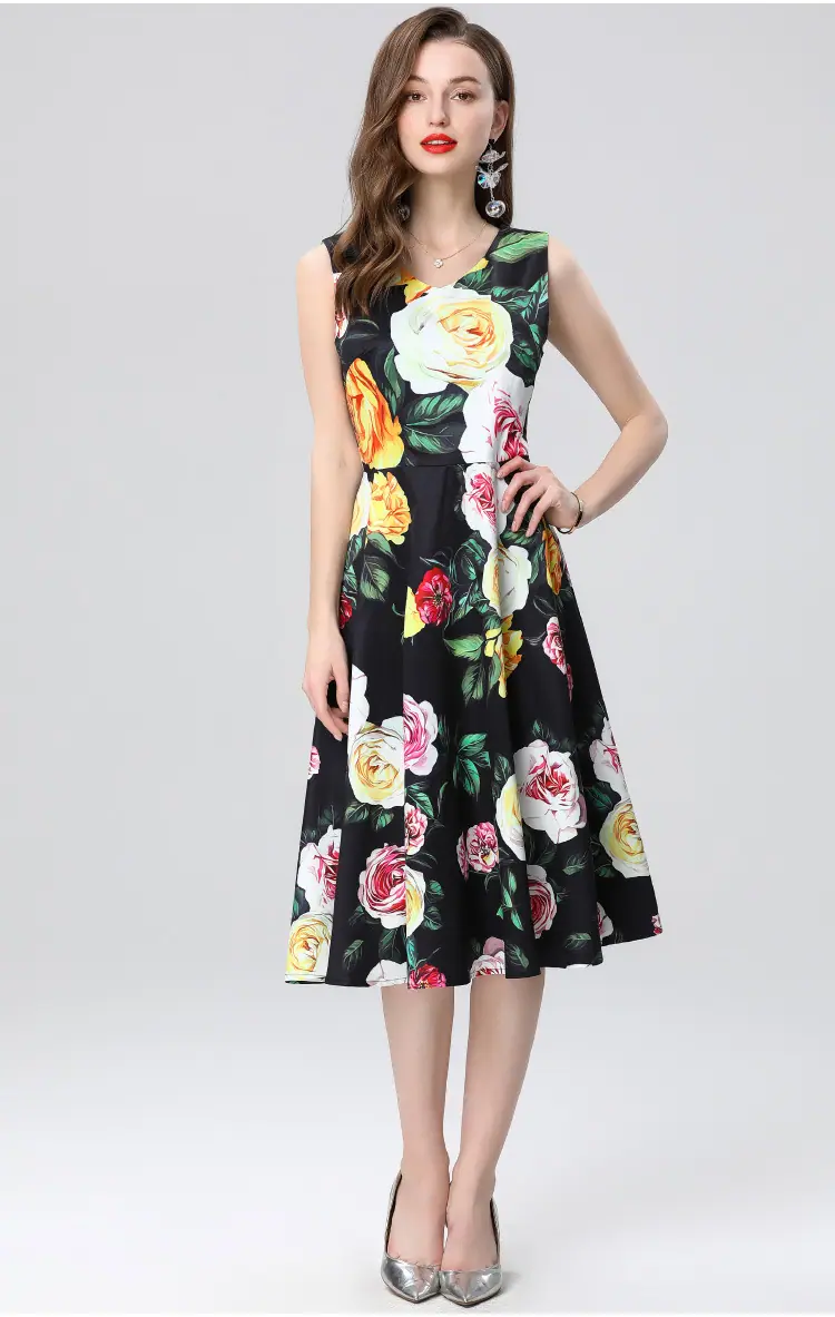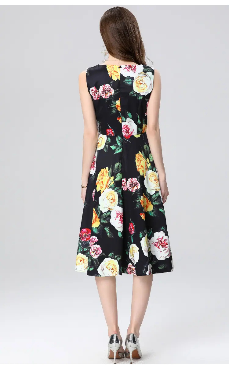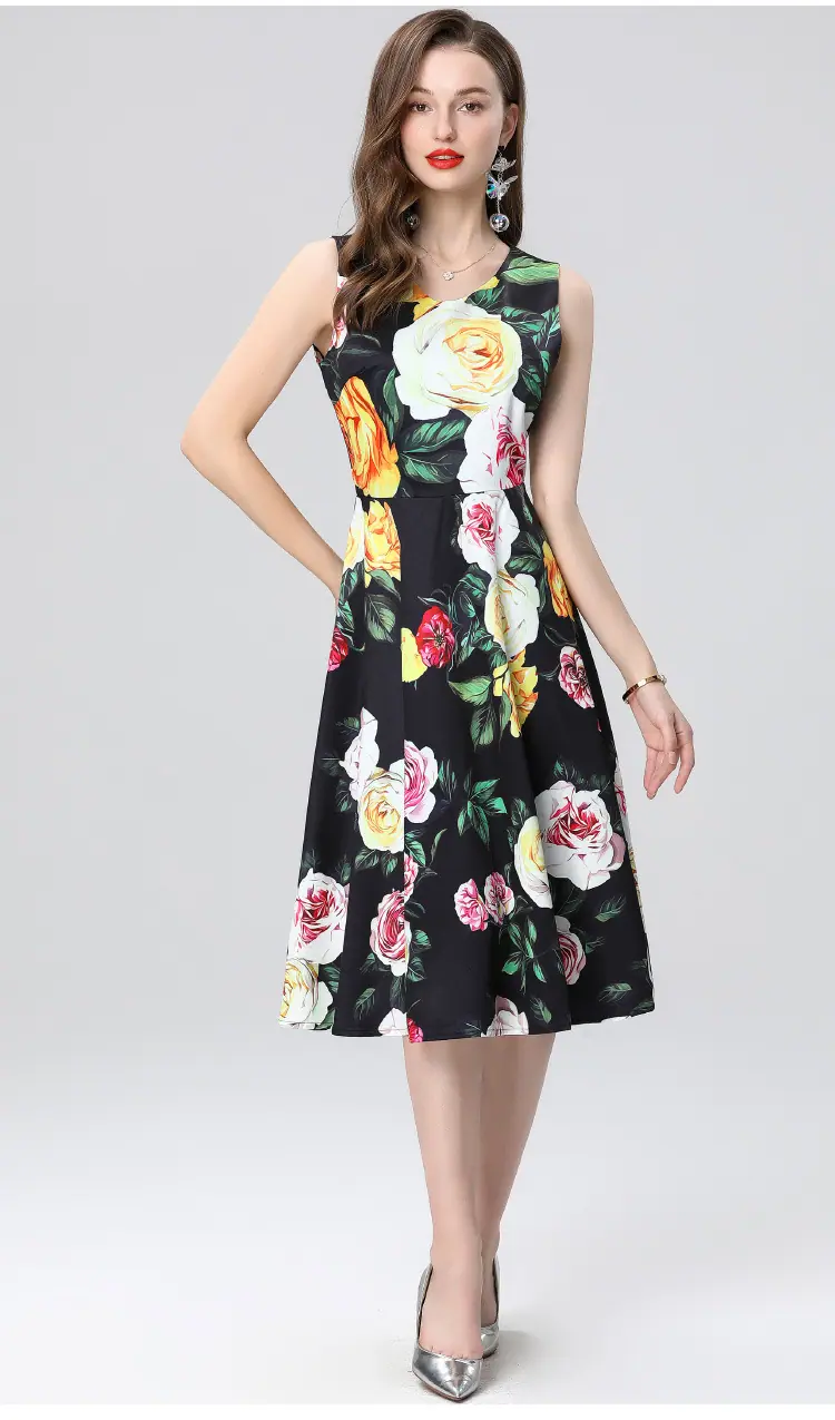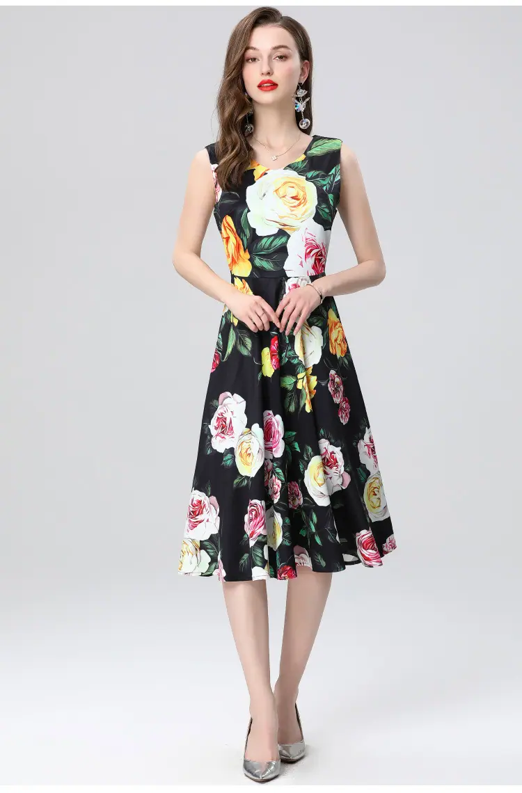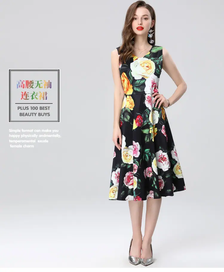 Vestido Europeu e Americano Feminino Transfronteiriço 2025 Amazon Novo Sem Mangas Cintura Alta Corte Tridimensional Cintura Saia Linha A