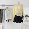 Proteção Solar Cardigã Vazado Fino Feminino Versátil Exterior Verão Novo Slim Amarrado Blusa Tricotada Top Curto Manga Longa