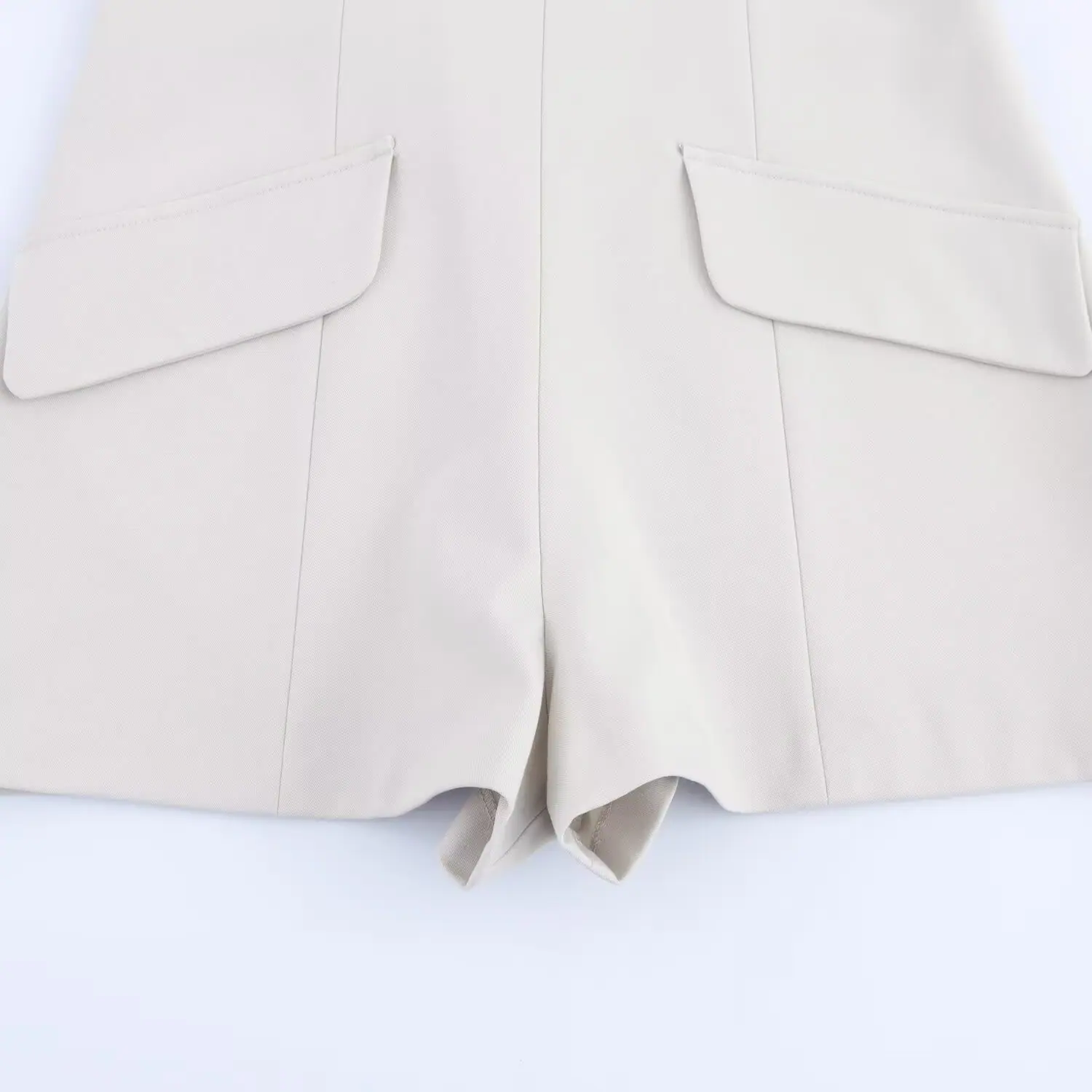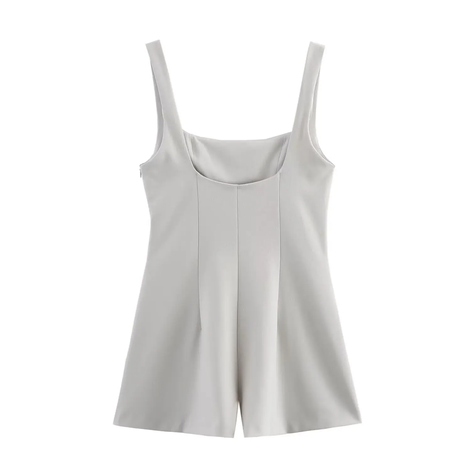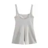 Macacão Shorts Feminino Transfronteiriço 2025 Novo Estilo Europeu e Americano Alça Cor Sólida Plissado Ajustado Sem Costas Verão