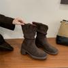 Botas Cowboy Ocidentais Novas 2025 para Mulheres, Botas Simples de Primavera e Outono, Botas de Montaria de Cano Médio Afuniladas com Boca em V, Botas Martin Empilhadas Franzidas