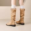 Botas Longas Femininas Augu Shiden 2025 Novo Outono e Inverno Botas de Cano Alto Melard de Sola Grossa para Pessoas Baixas e Botas de Cavaleiro