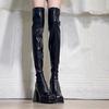 Botas de Tacón Alto con Suela Gruesa y Punta Cuadrada para Mujer, Botas Elásticas, Nuevas para Otoño e Invierno 2025, Versátiles, Aspecto Adelgazante, Aspecto Elegante Adelgazante, Botas Altas hasta la Rodilla