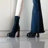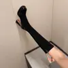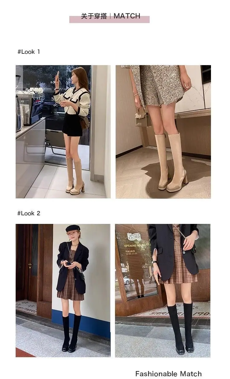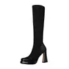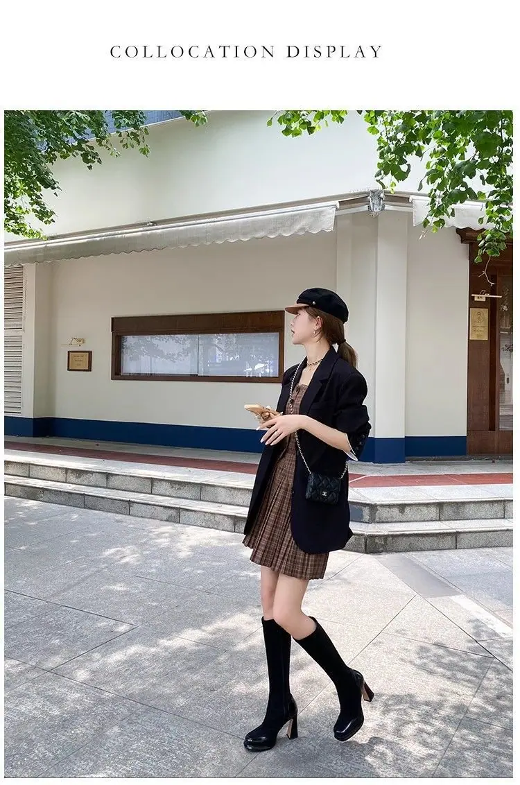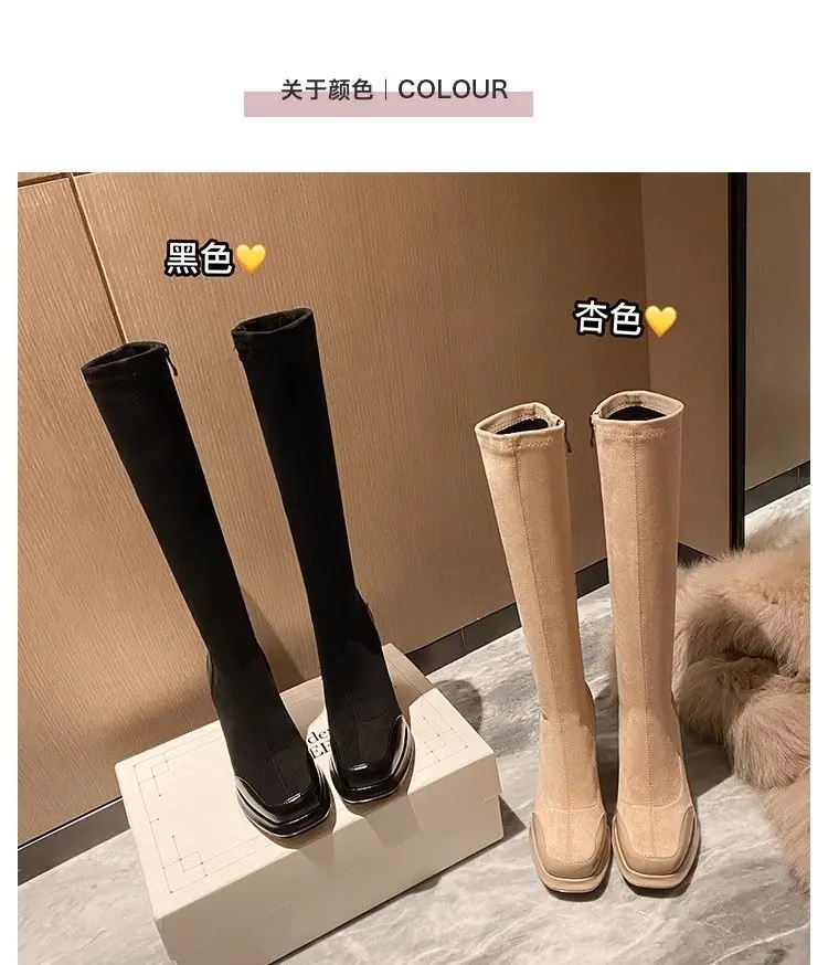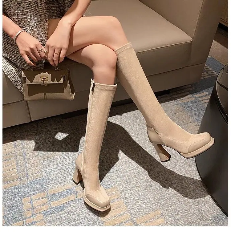 Outono e Inverno Salto Alto Camurça Novo Emagrecimento 2024 Elástico Cano Alto Salto Grosso Bota de Cano Alto até o Joelho Estilo Hepburn Bota Francesa Emagrecedora