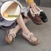 Jiezu 2025 Inverno Novo Estilo Forrado com Lã Quente Uma Perna Solado Grosso Versátil Camada de Dedo de Algodão Couro de Vaca Estilo Retro Sapatos Femininos