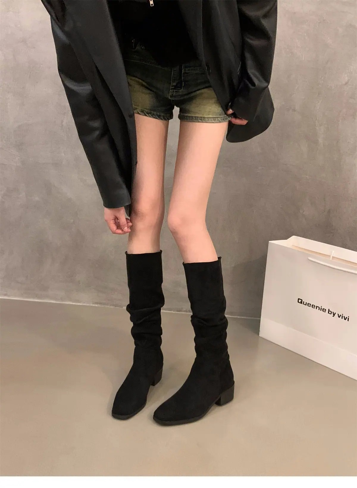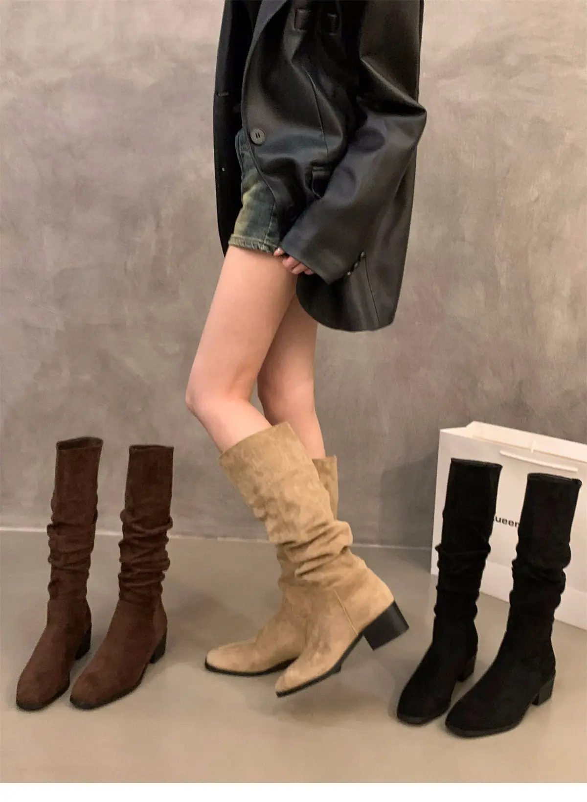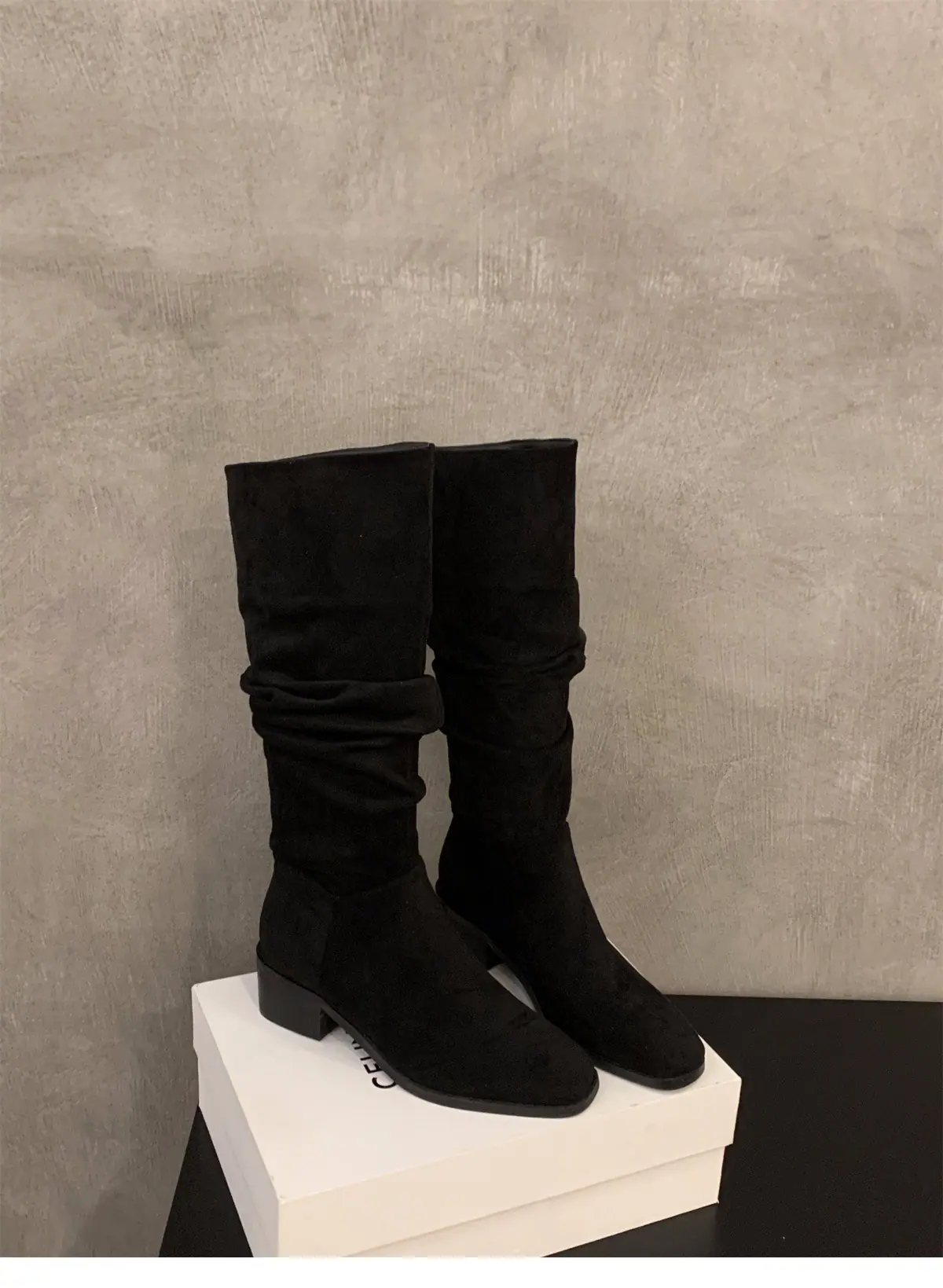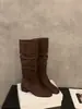 Botas Finas de Salto Alto Bico Quadrado Meia Panturrilha Botas de Cavaleiro Sapatos Femininos 2025 Novo Outono Inverno Botas Empilhadas Botas Longas