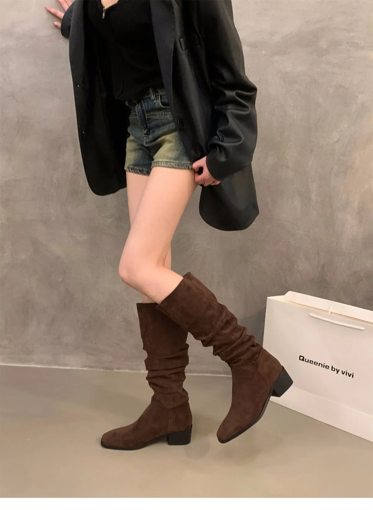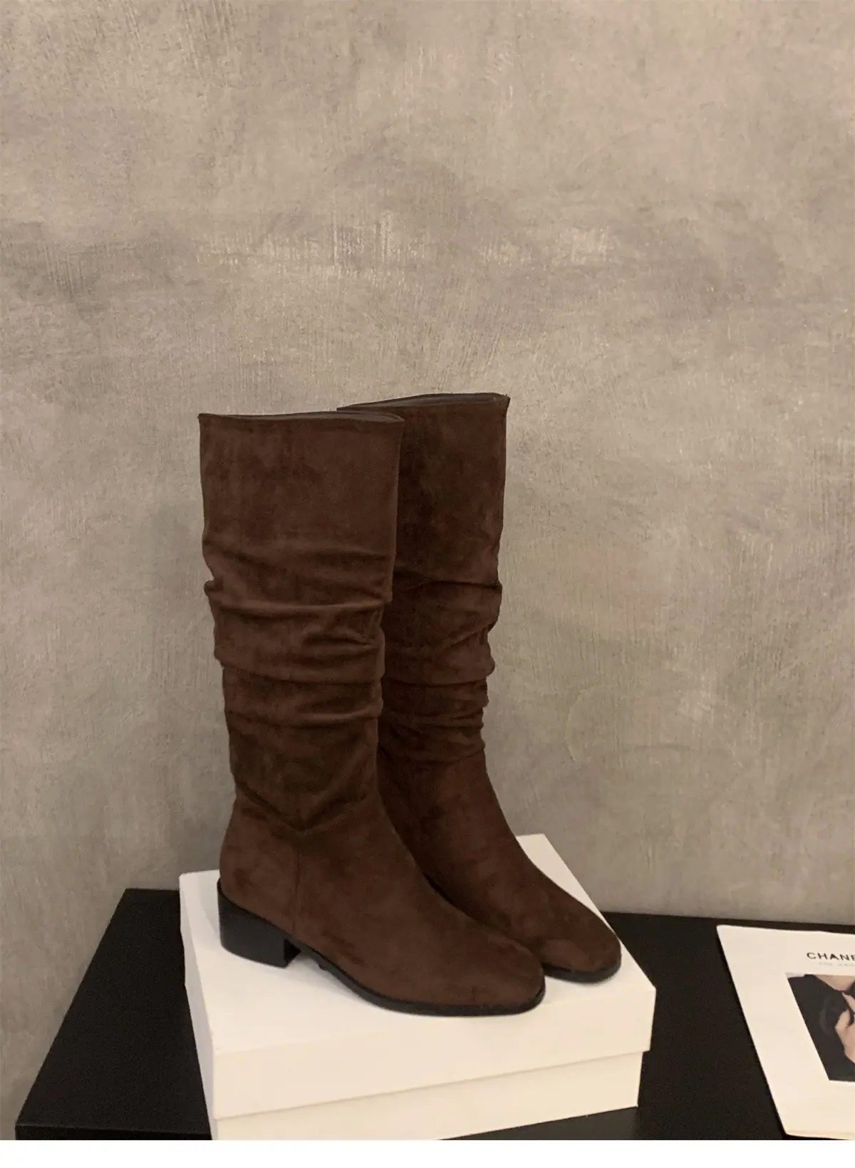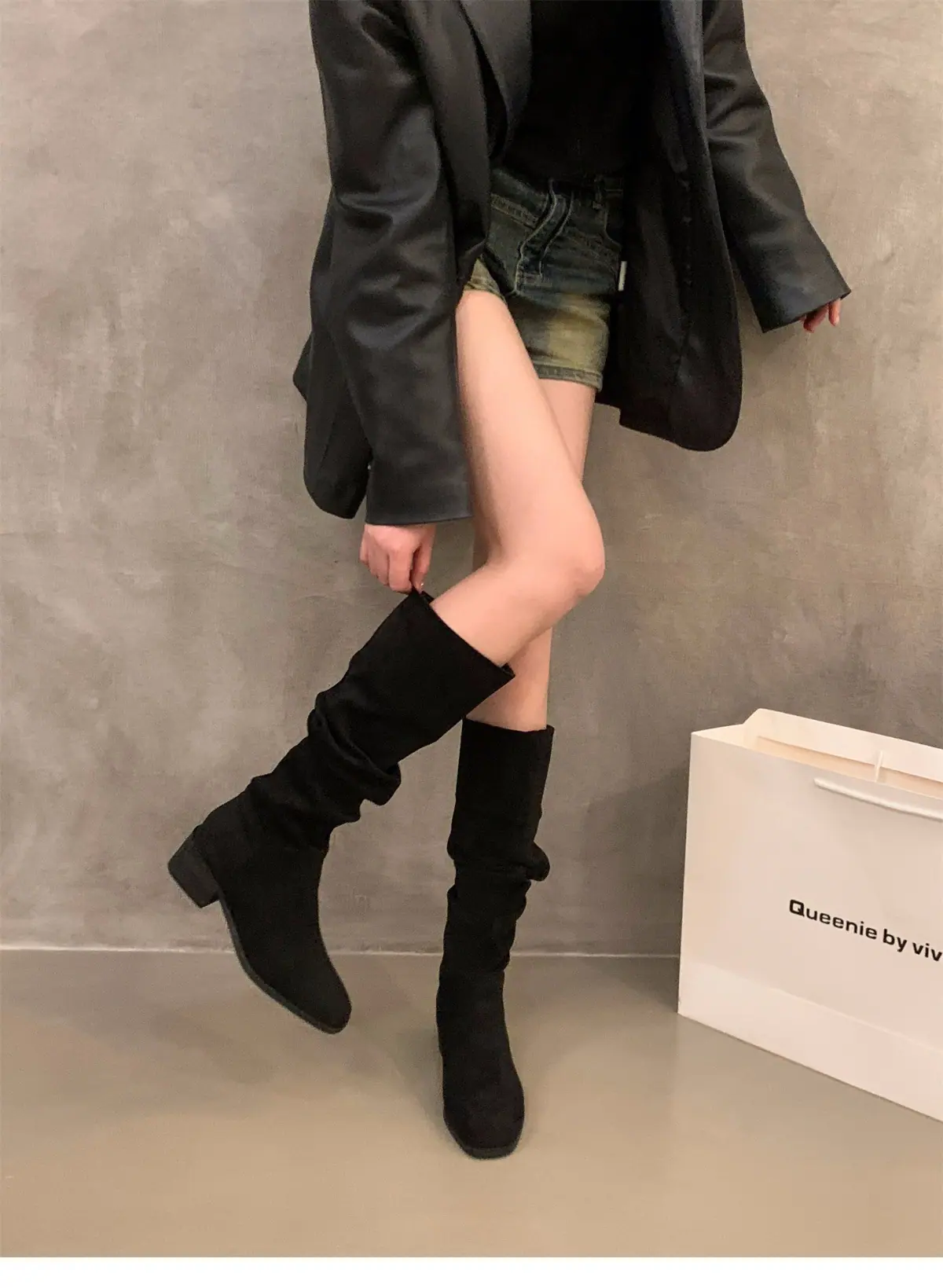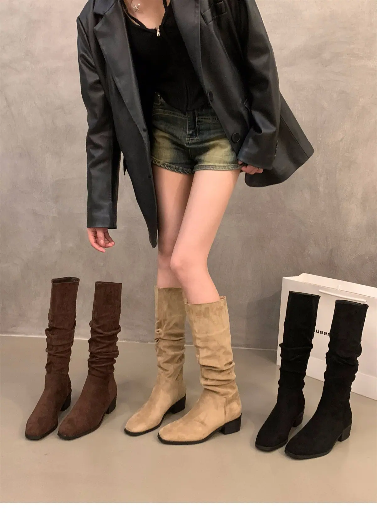Botas Finas de Salto Alto Bico Quadrado Meia Panturrilha Botas de Cavaleiro Sapatos Femininos 2025 Novo Outono Inverno Botas Empilhadas Botas Longas