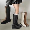 Botas Pretas Estilo Britânico Slim Flat Botas Femininas 2025 Novo Outono Acima do Joelho Versátil Botas de Cavaleiro