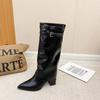 Branco look slim botas over-the-knee altas botas petite de cano médio botas de salto alto realçadoras botas femininas outono e inverno mais veludo cano alto botas de couro