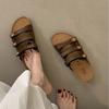 Sandálias Rasteirinhas Femininas de Verão com Fivela Tripla da Moda Vintage 2025 Sapatos de Praia Femininos Novos Plataforma Buccan Chinelos de Uso Externo