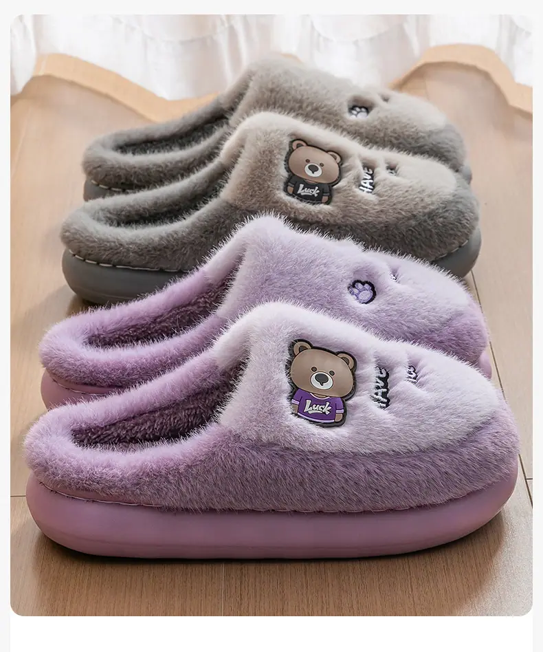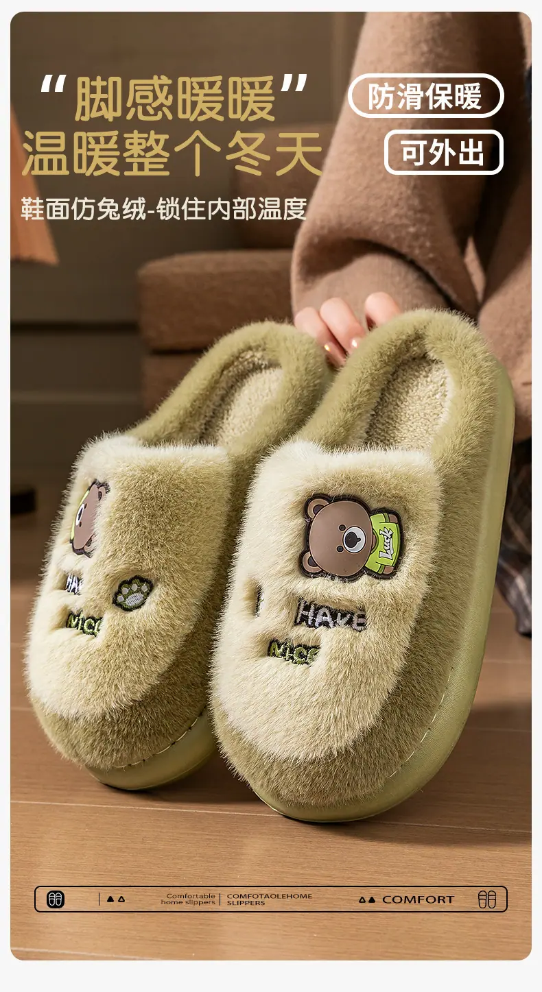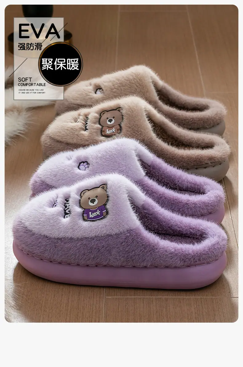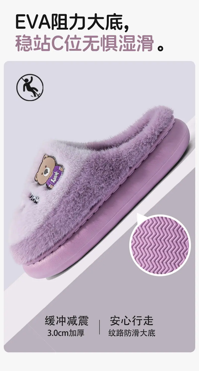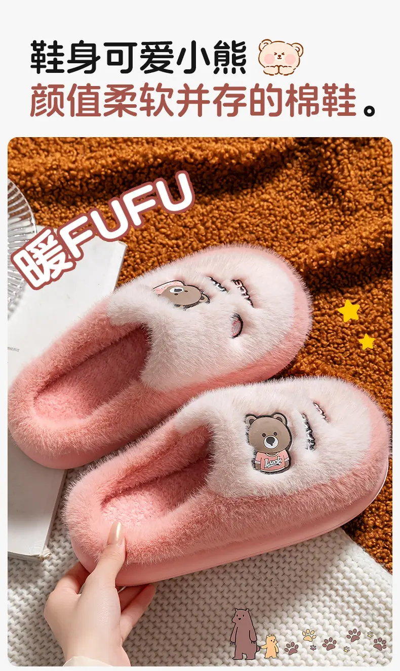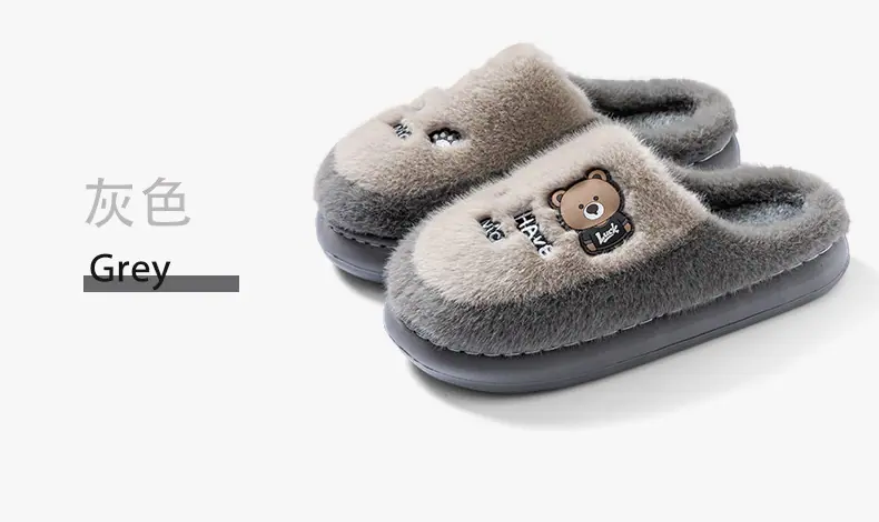 Coffee color [Fleece-lined and thickened cartoon plush cotton slippers], Gray【Fleece-lined Thickened Cartoon P...