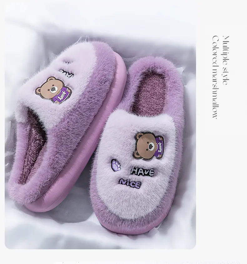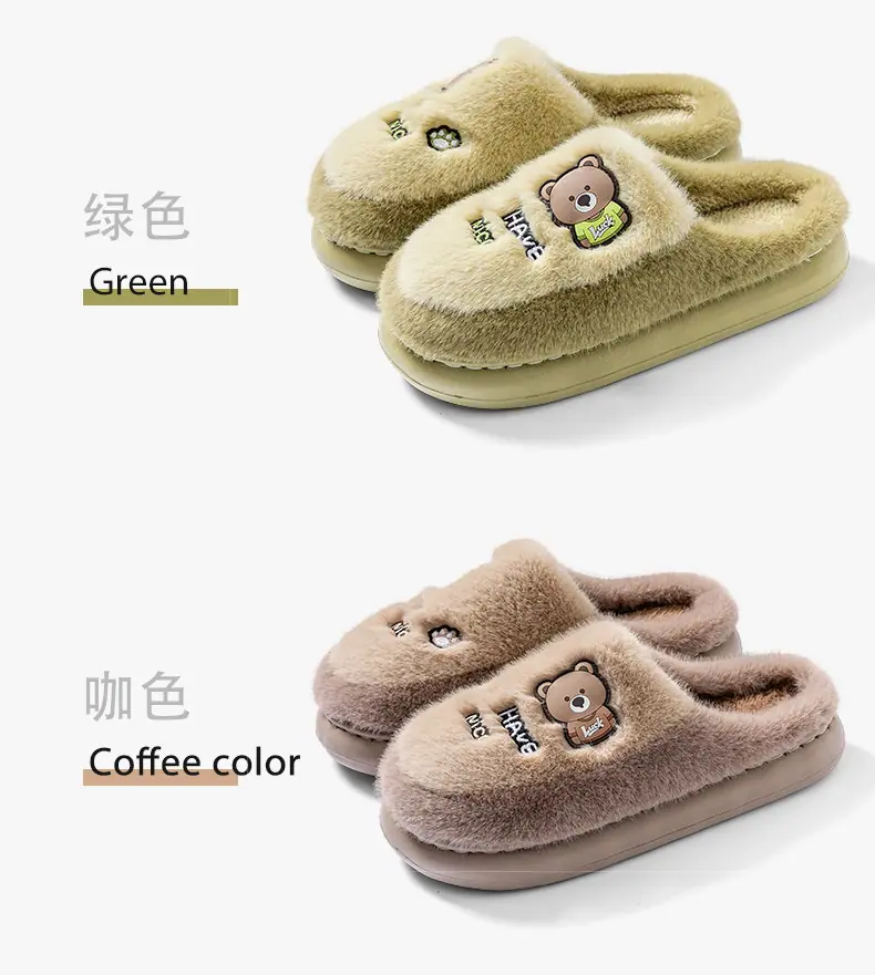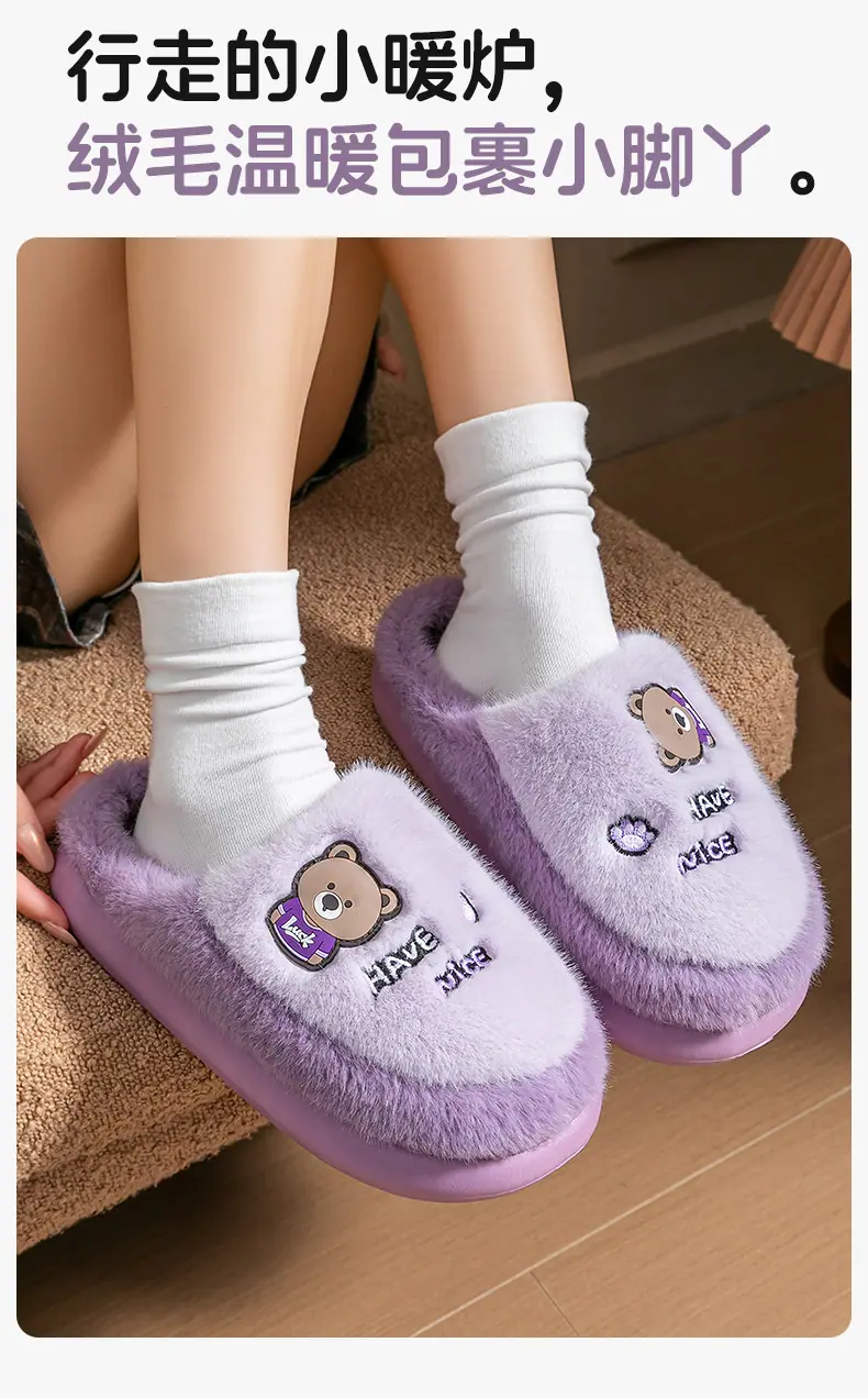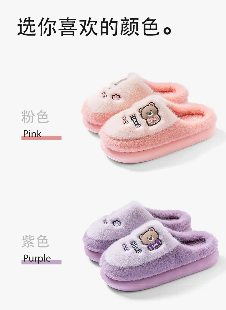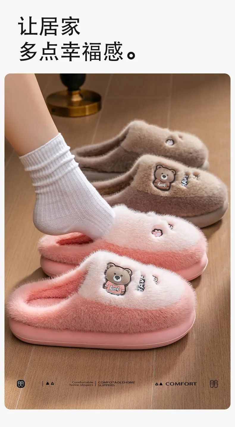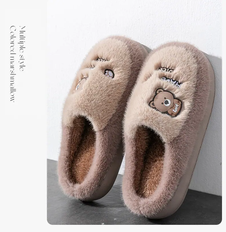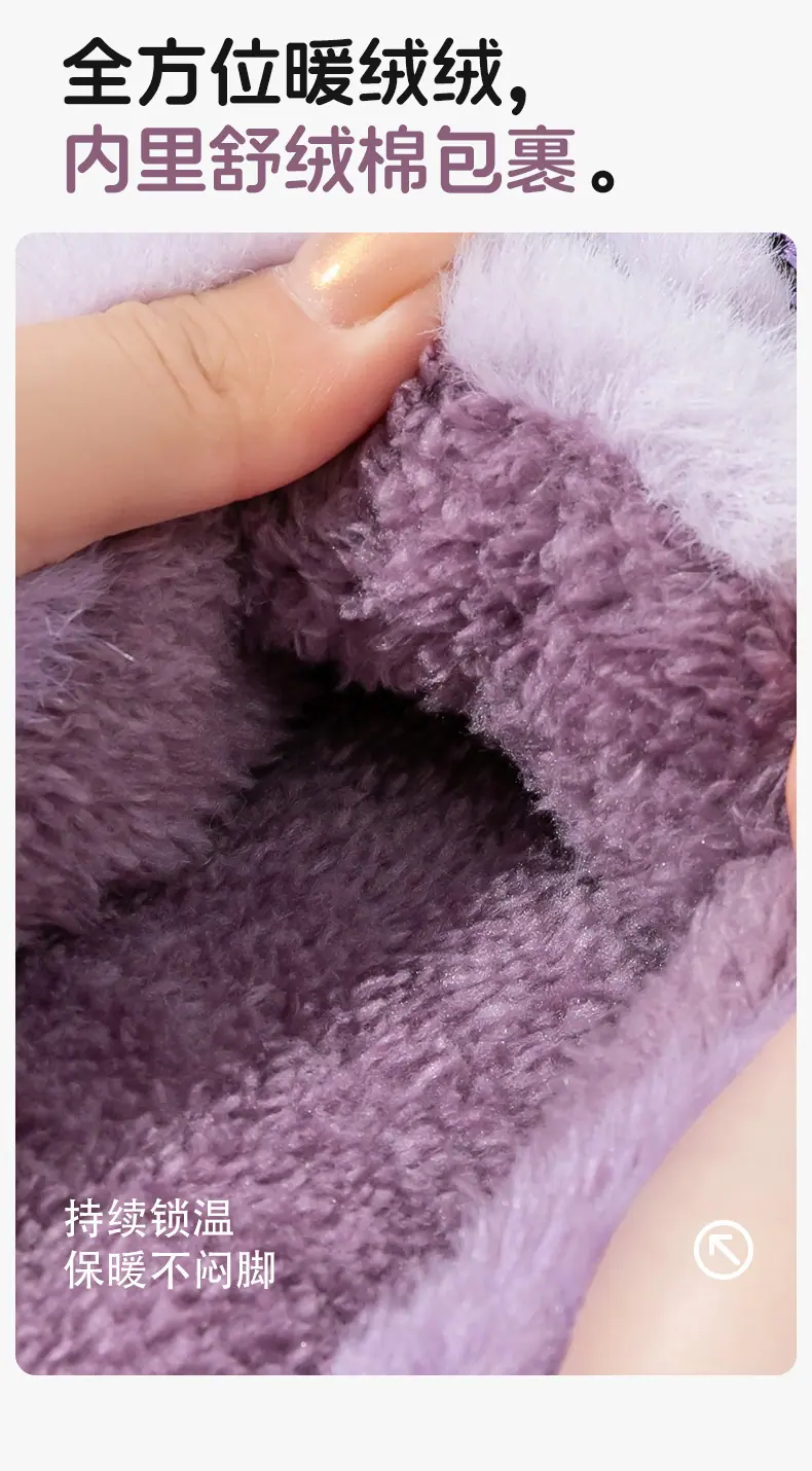 Coffee color [Fleece-lined and thickened cartoon plush cotton slippers], Gray【Fleece-lined Thickened Cartoon P...
