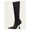 Botas de Salto Alto Europeias para Mulheres Comércio Exterior 2025 Nova Coleção Outono Aparência Emagrecedora Botas Slim Elásticas Versáteis Botas de Cano Alto